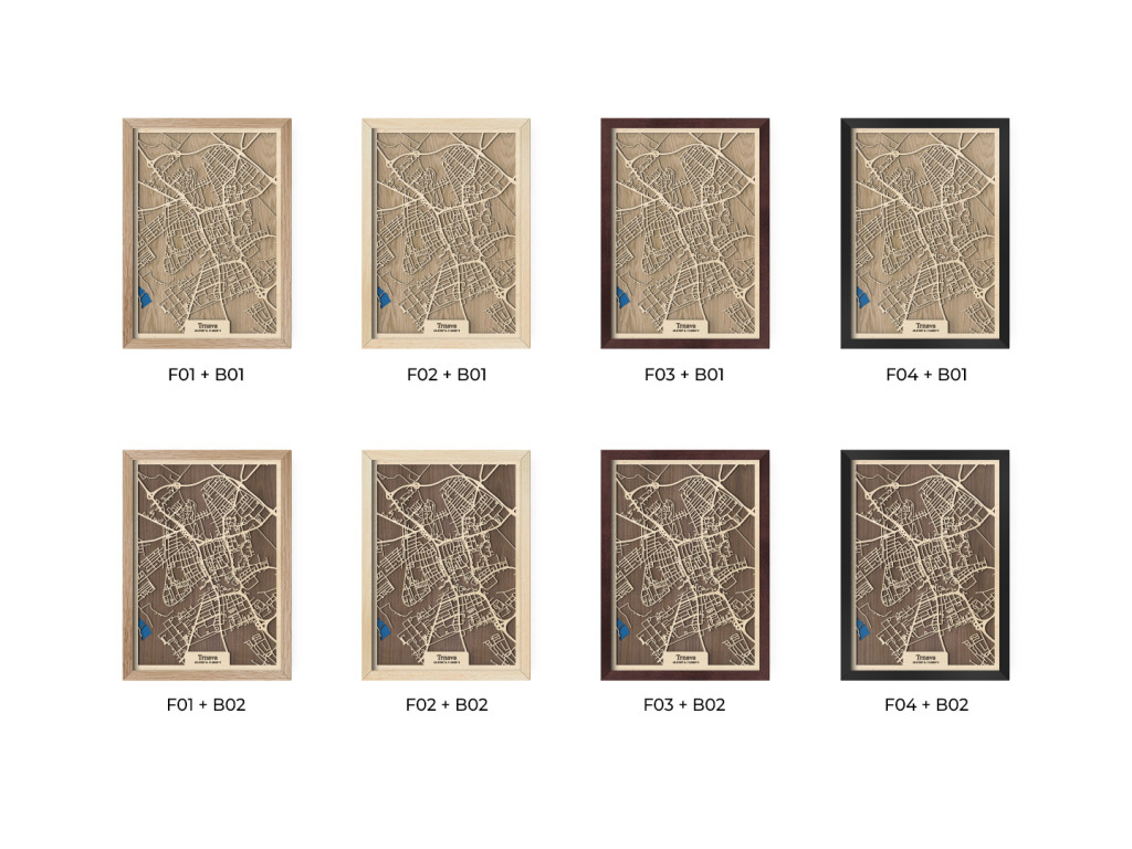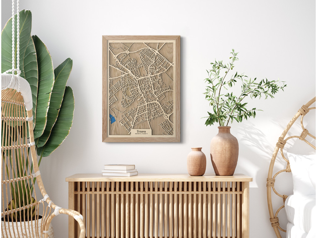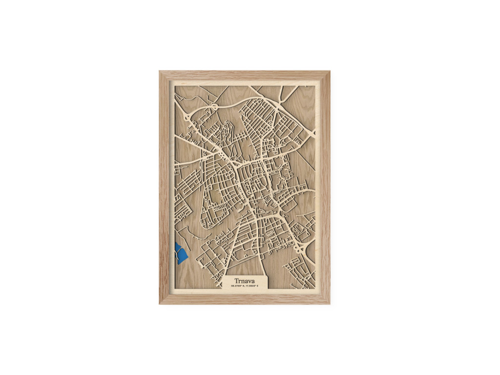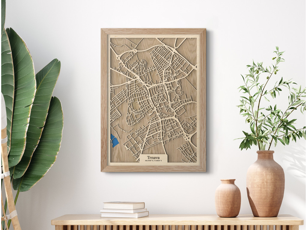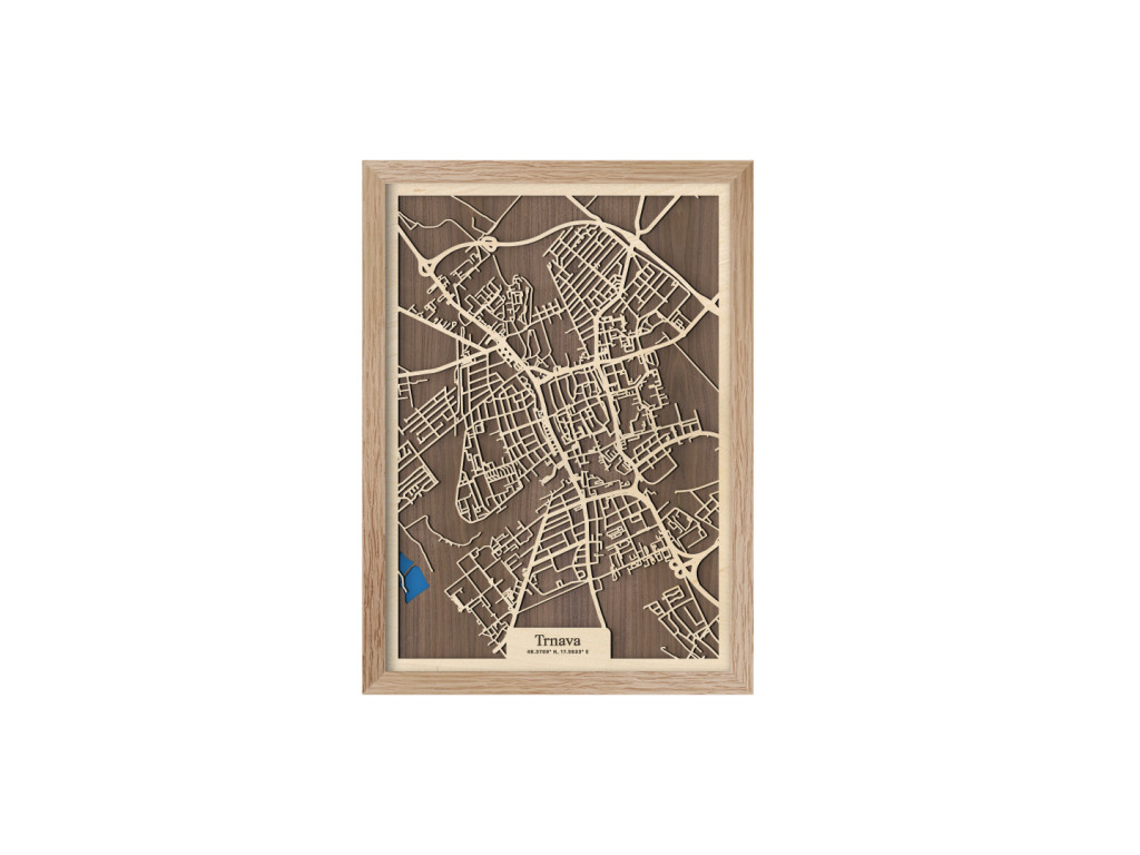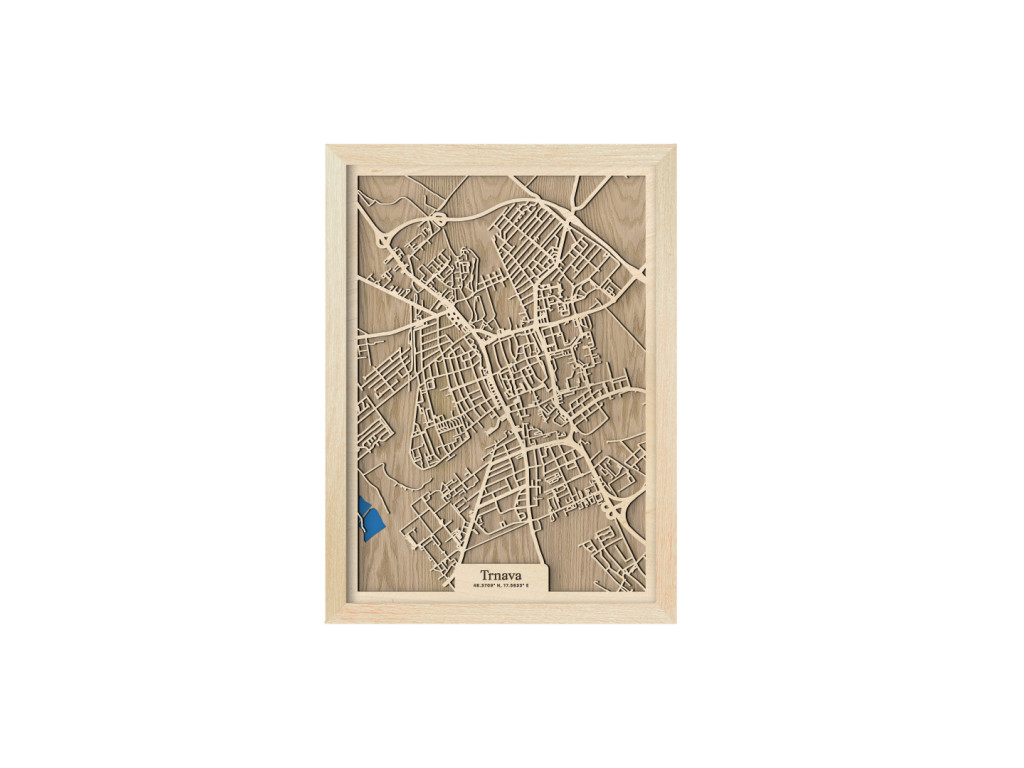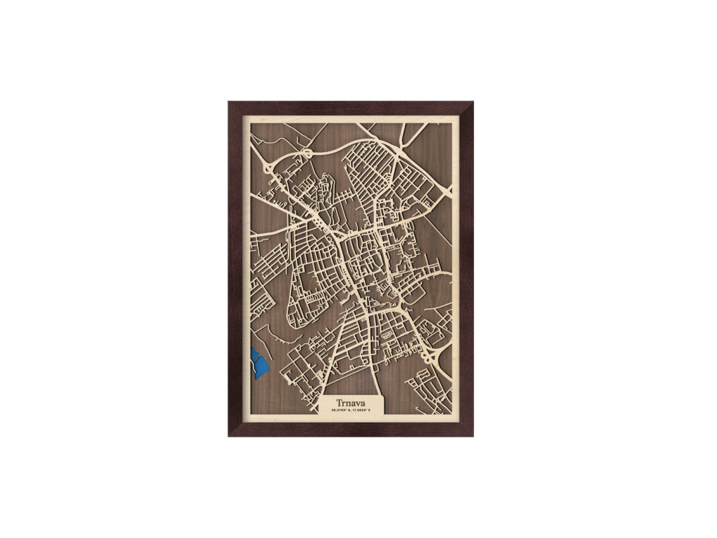 Ako rýchlo sa viete zorientovať v uliciach malého Ríma? Drevená mapa Trnava nezachytáva len historickú časť 7. najväčšieho mesta Slovenska a hlavné časti delené podľa svetových strán, ale aj Družbu, Rázcestie, Nad Kamenným mlynom, Modranku a na modro maľované Trnavské rybníky. Obraz Trnavy z kolekcie drevko CITY tak môže zdobiť steny v dizajne podľa vlastných predstáv. Zvoľte si preferovanú veľkosť a odtieň rámu aj podkladu, aby dekorácia dokonale ladila s vašim interiérom.