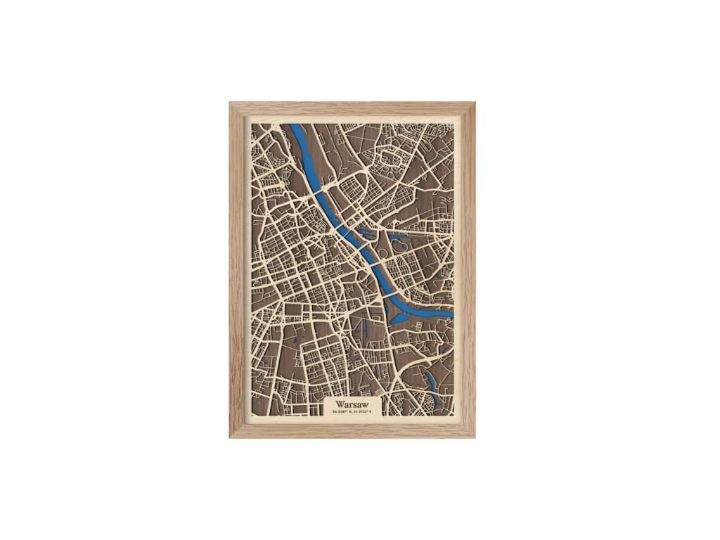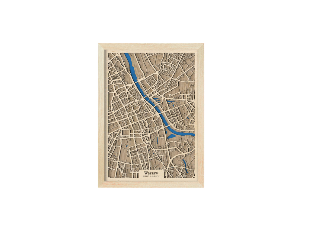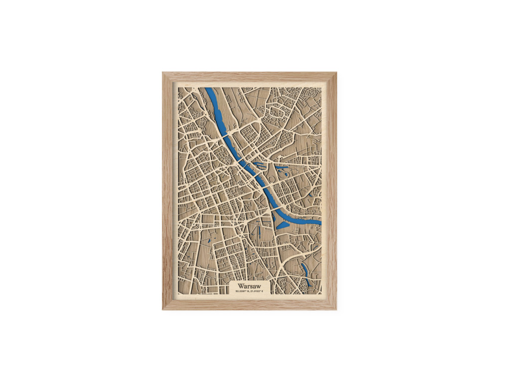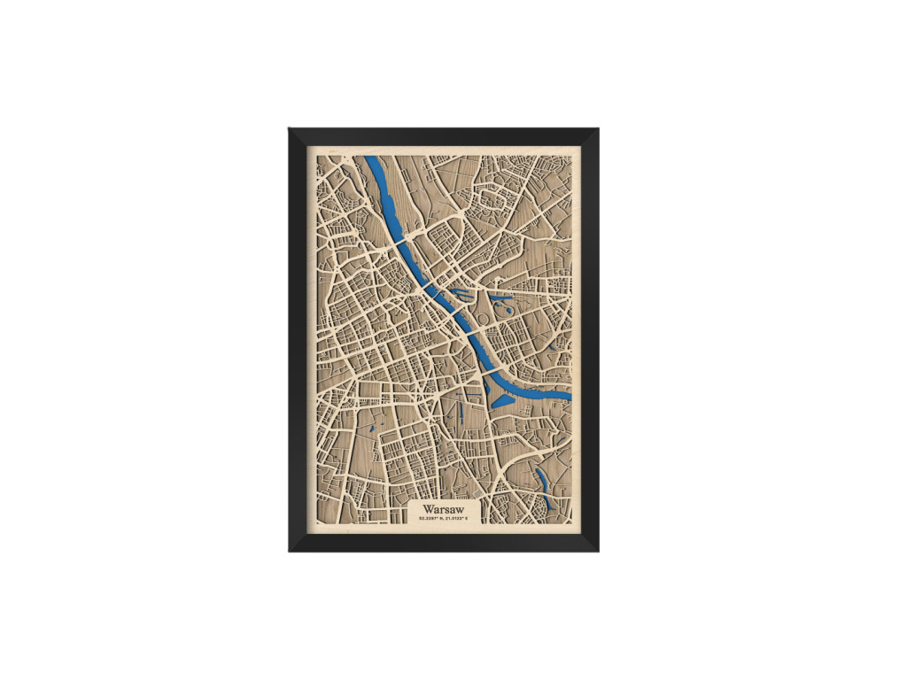 Mesto, ktoré povstalo z popola môžete mať vystavené v drevenej 3D podobe. Ulice hlavného a najväčšieho mesta Poľska vyzerajú zaujímavo nielen naživo, ale aj pri pohľade zhora. Mapa Varšava z kolekcie drevko CITY rámuje mestské časti od Praga-Północ, Praga-Południe, Żoliborz, Śródmieście aj Mokotów. Navyše, vďaka výberu parametrov nižšie môžete mať obraz Varšavy v dizajne ušitom na mieru.