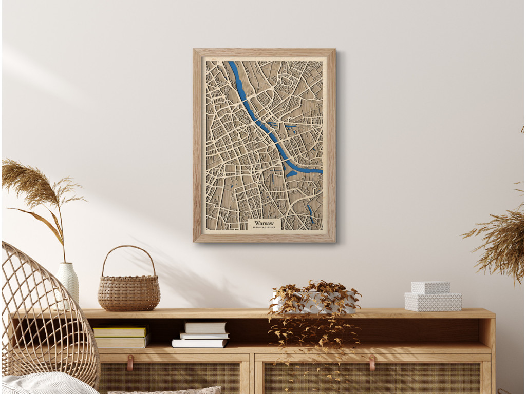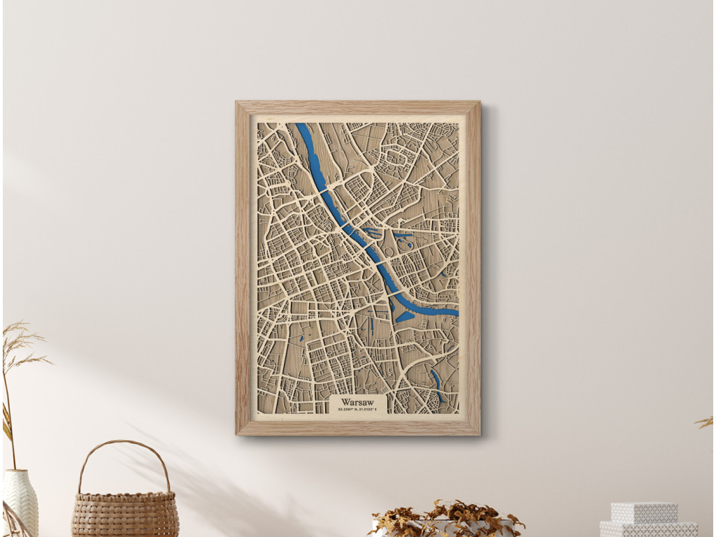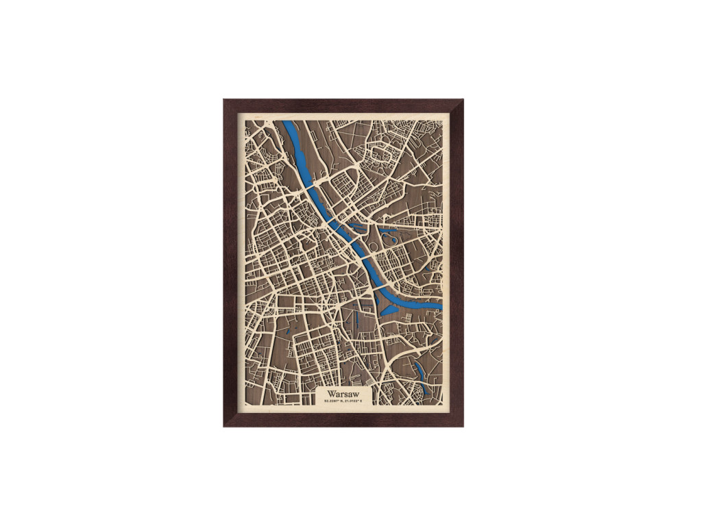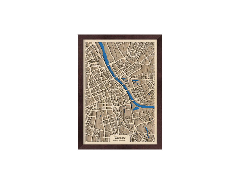 Mesto, ktoré povstalo z popola môžete mať vystavené v drevenej 3D podobe. Ulice hlavného a najväčšieho mesta Poľska vyzerajú zaujímavo nielen naživo, ale aj pri pohľade zhora. Mapa Varšava z kolekcie drevko CITY rámuje mestské časti od Praga-Północ, Praga-Południe, Żoliborz, Śródmieście aj Mokotów. Navyše, vďaka výberu parametrov nižšie môžete mať obraz Varšavy v dizajne ušitom na mieru.