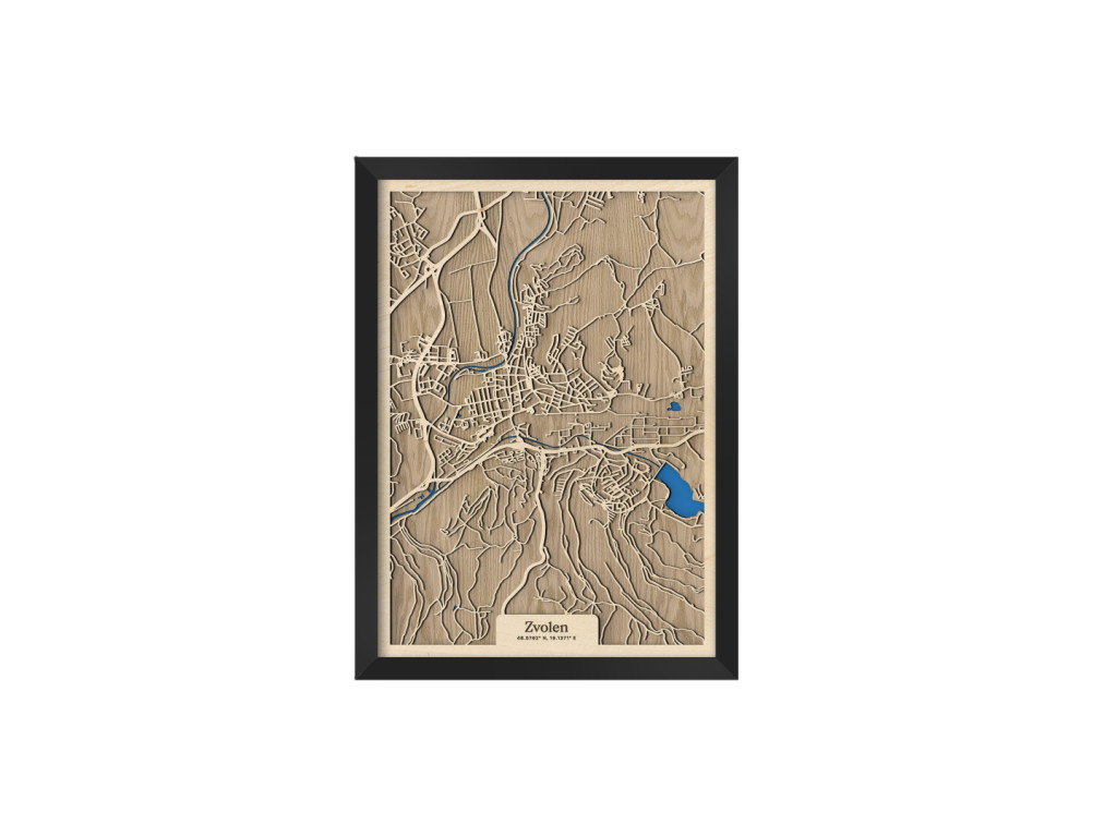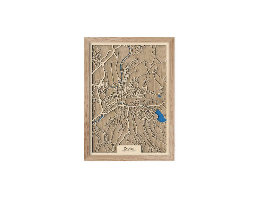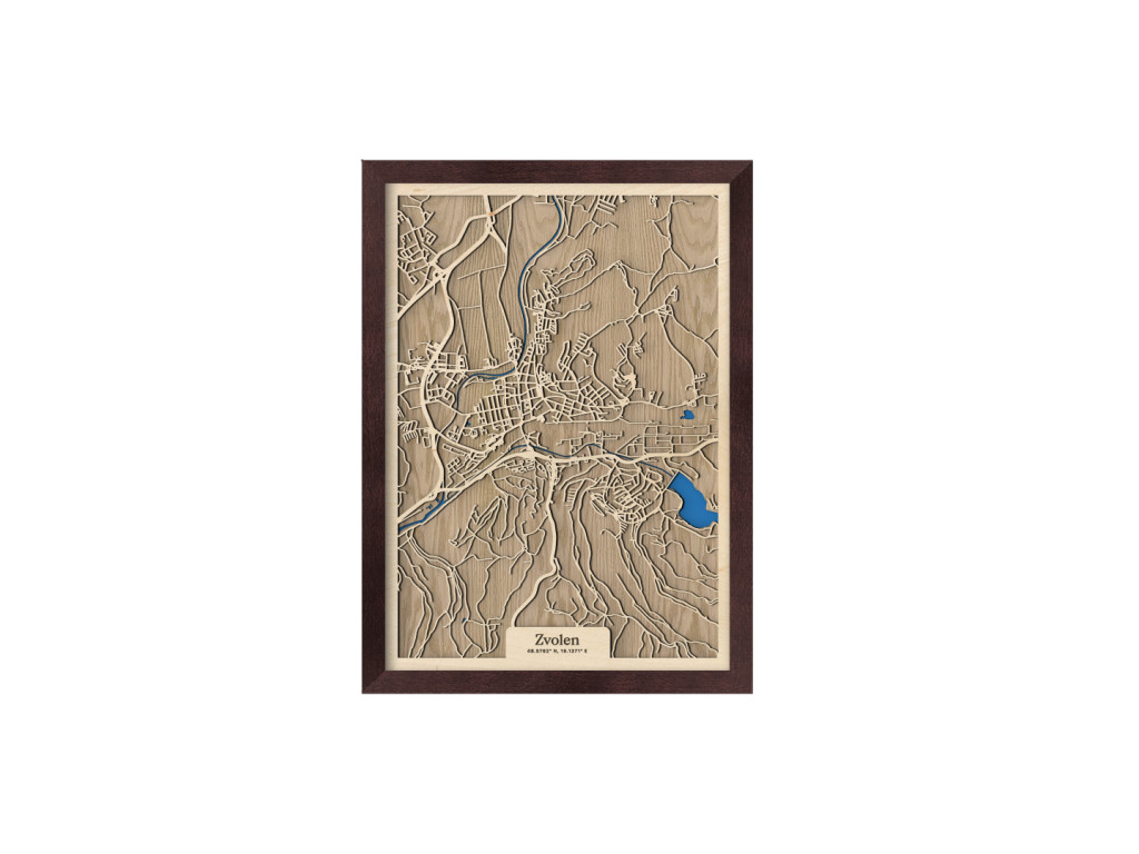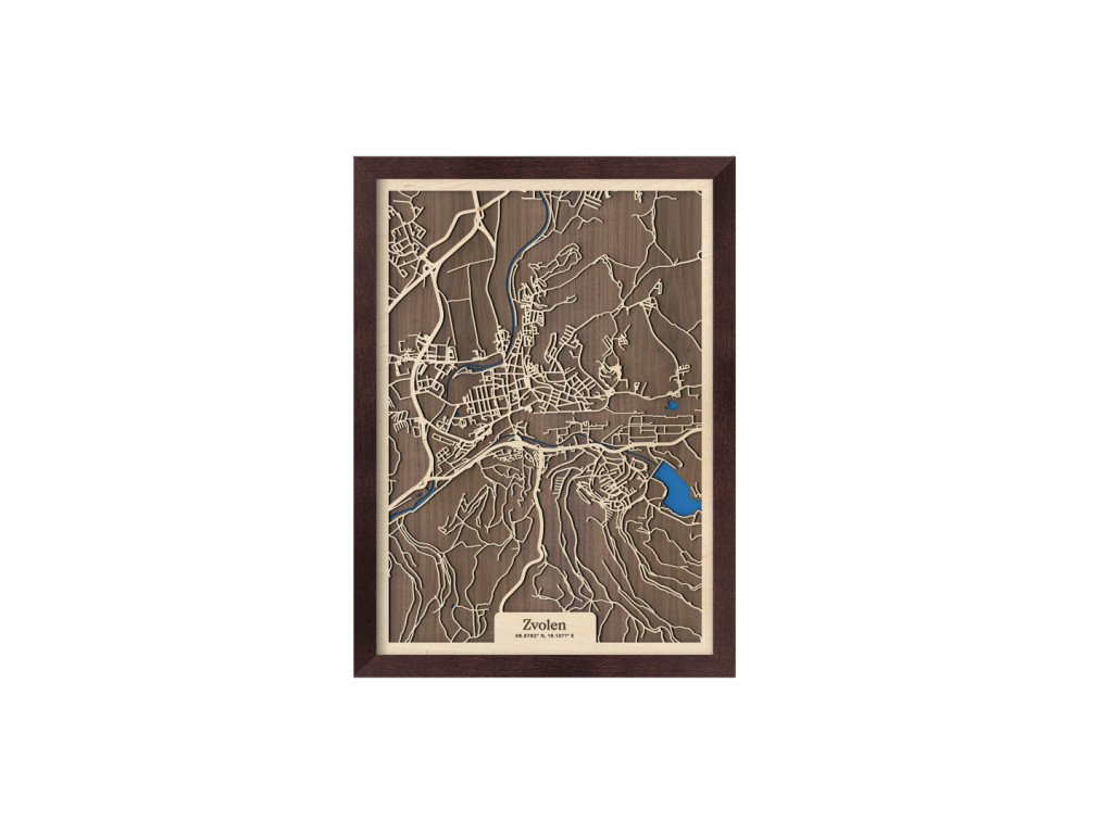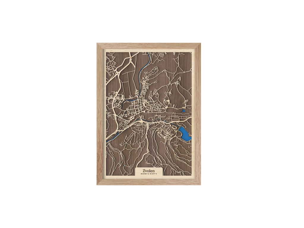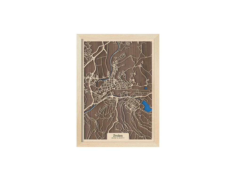 Medzi klenotmi stredného Slovenska a kolekcie drevko CITY toto mesto určite nesmie chýbať. Drevený obraz Zvolen zachytáva rieky Hron a Slatina, na ktorých sútoku leží. Na dekorácii medzi spletitými cestami vyniká aj Zvolenská priehrada, centrum mesta a časti Bučina, Môťová, Pod Dráhy, Nepresnica, Pod Harajchom, Tepličky, Kováčová a ďalšie. Mapa Zvolena, a teda 12. najväčšieho mesta Slovenska, je dostupná vo viacerých farebných kombináciách a 2 veľkostiach.