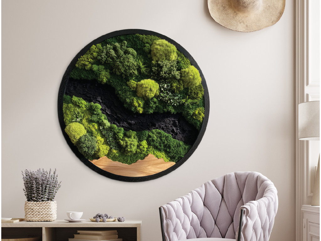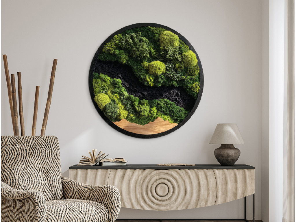 La décoration ronde en mousse Touches de verdure apportera à votre intérieur une parfaite imitation de mousse vivante. Grâce à la technologie UV moderne, vous obtiendrez un effet 3D réaliste sans aucun entretien. Ce tableau conservera son aspect frais pendant des années et coûte moins cher que les œuvres classiques en mousse. Choisissez une pièce originale qui allie la beauté de la nature à la praticité.