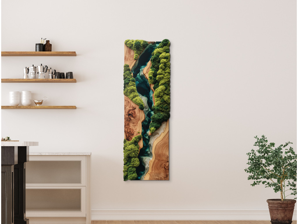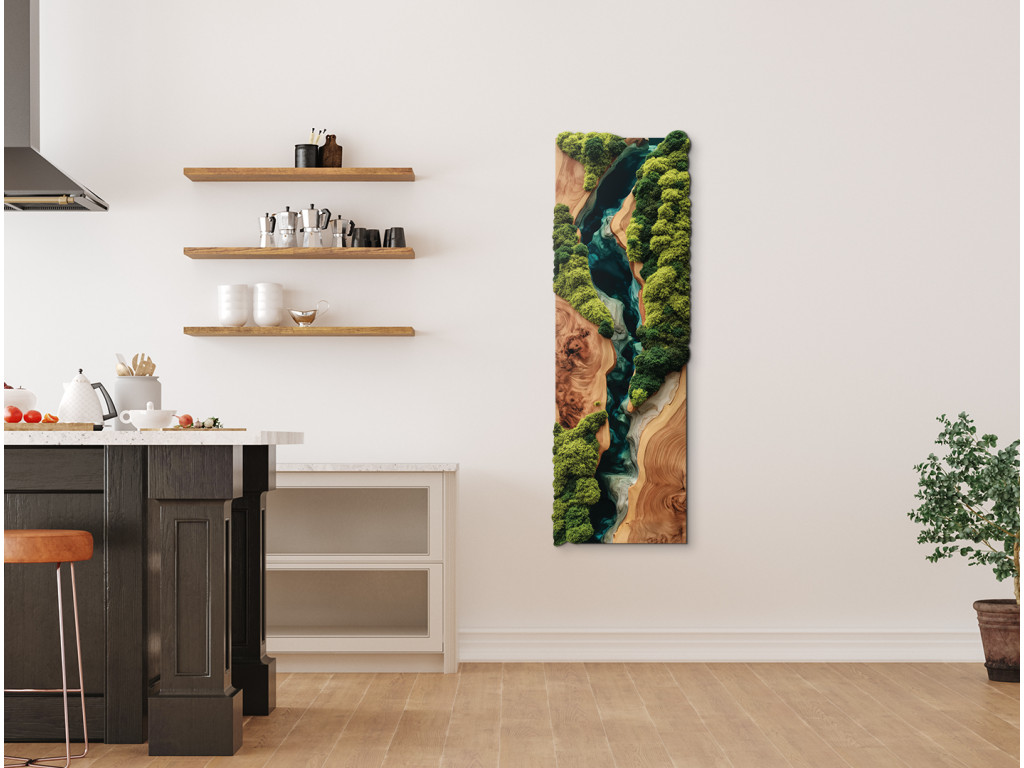 Profitez de la vue sur l'image de mousse Toucher de nature (impression UV), qui semble vivante, mais sans avoir besoin d'être arrosée ou éclairée. L'imitation réaliste de la mousse et l'époxy attrayant sont non seulement plus abordables, mais aussi plus durables que l'original. Votre espace bénéficiera d'un élément de design élégant, durable et ne nécessitant aucun entretien. Ce tableau est la solution idéale pour une maison ou un bureau moderne.