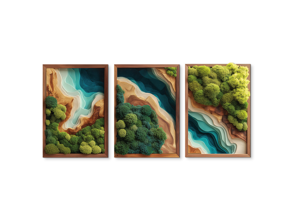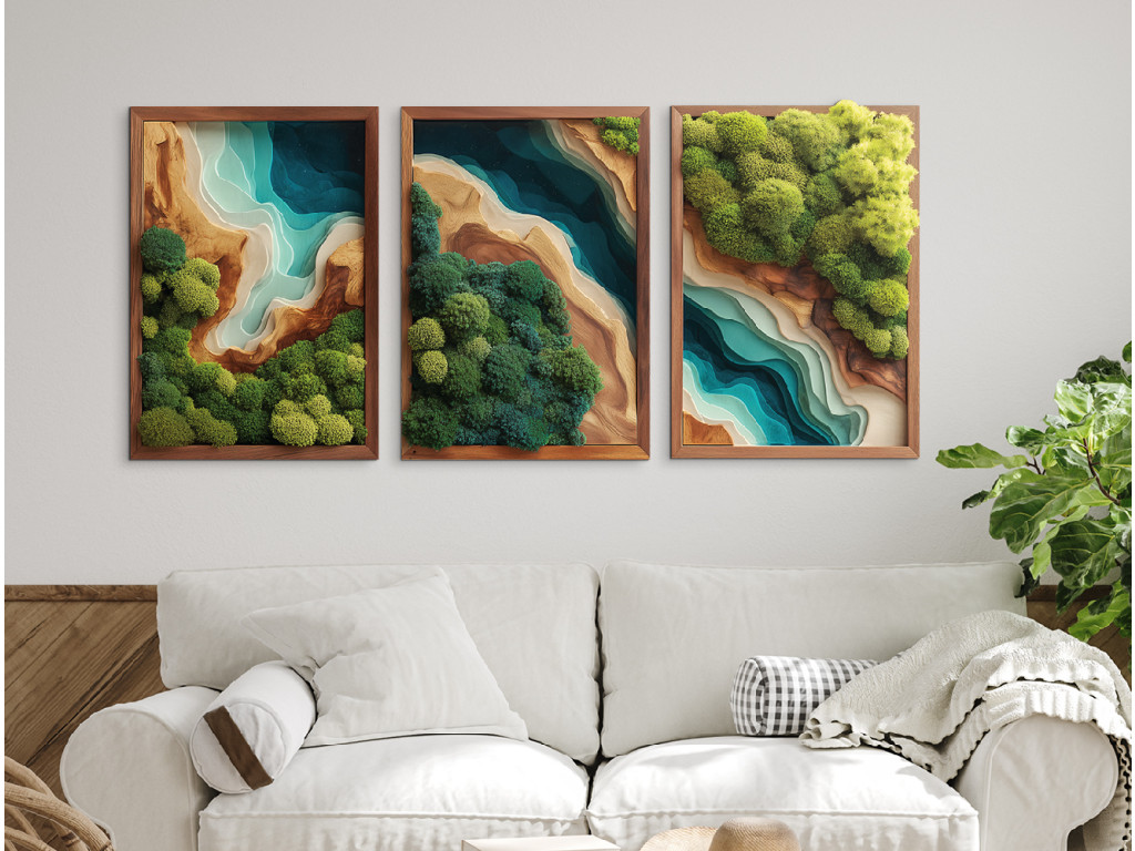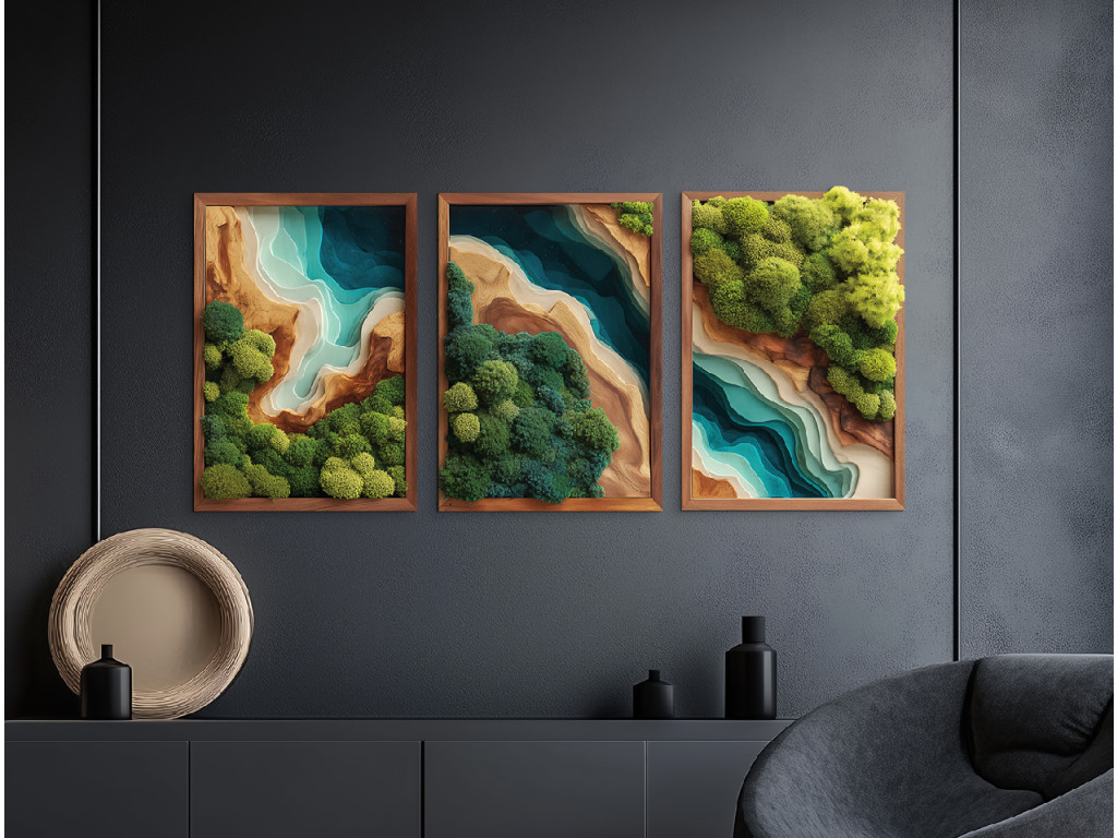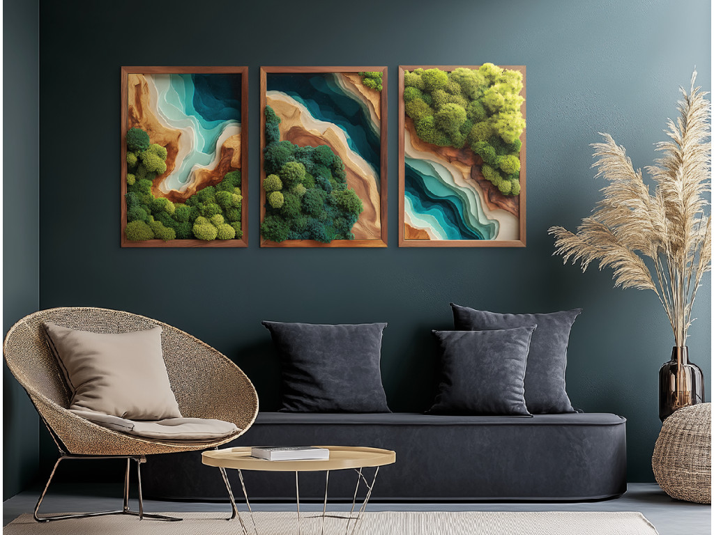 Profitez de la vue sur le tableau en mousse en trois parties Refuge (impression UV), qui semble vivant, mais sans avoir besoin d'être arrosé ou éclairé. L'imitation réaliste de la mousse et l'époxy attrayant sont non seulement plus abordables, mais aussi plus durables que l'original. Votre espace bénéficiera d'un élément de design élégant, durable et sans entretien.