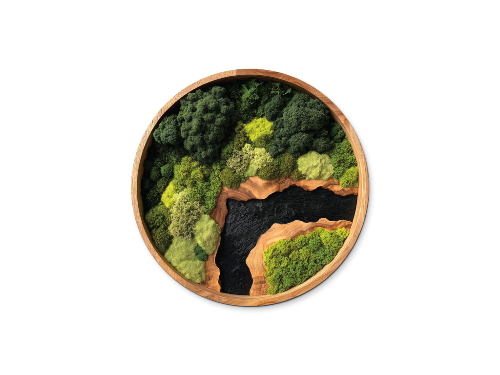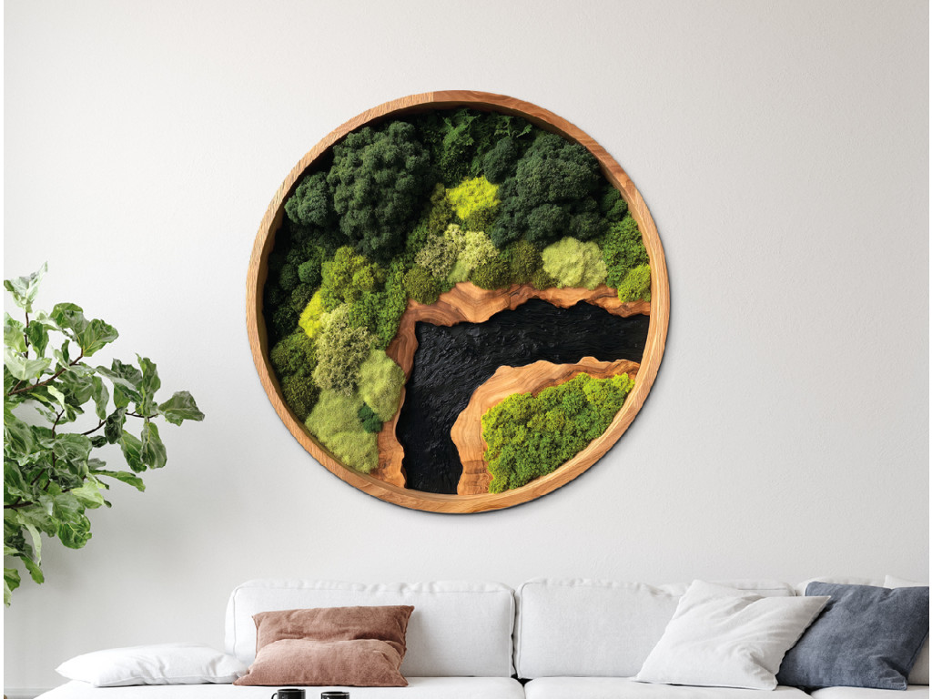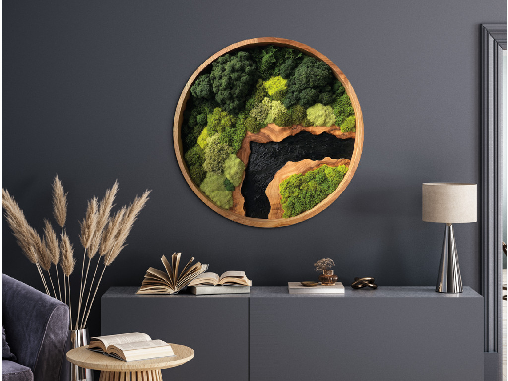 Le tableau rond en mousse Touche de vert apportera à votre intérieur une parfaite imitation de mousse vivante. Grâce à la technologie UV moderne, vous obtiendrez un effet 3D réaliste sans aucun entretien. Ce tableau conservera son aspect frais pendant des années et coûte moins cher que les œuvres classiques en mousse. Choisissez une pièce originale qui allie la beauté de la nature à la praticité.
