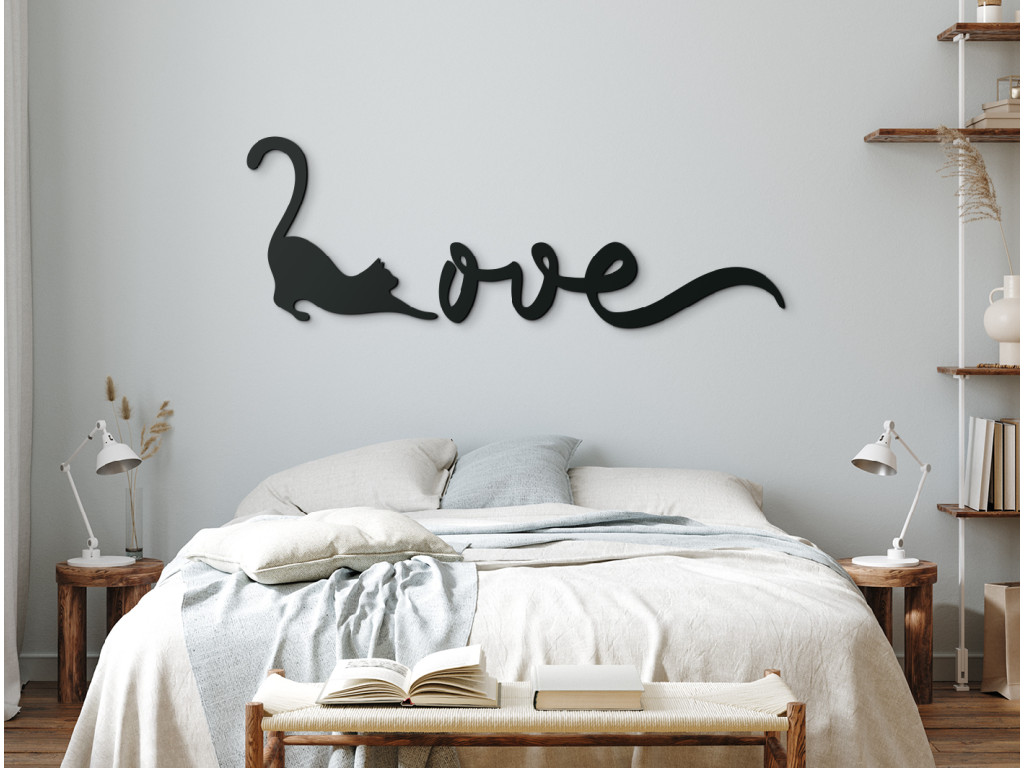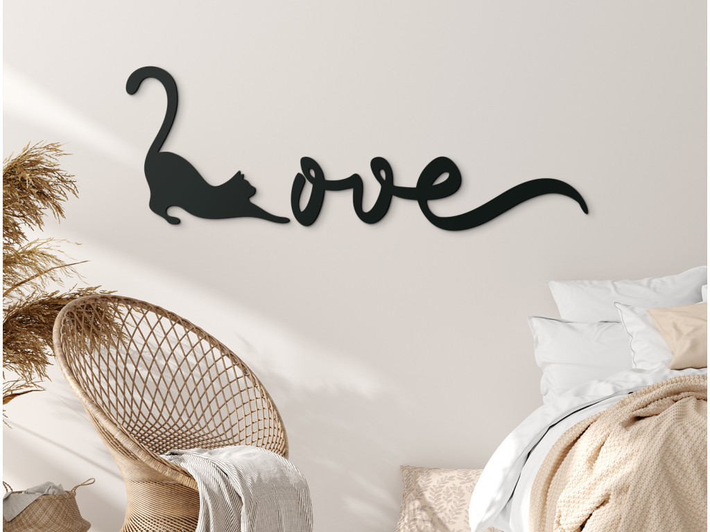 Unikátne prepojenie nápisu Love a mačacieho motívu dodáva dekorácii osobitý ráz, ktorý oživí váš interiér. Precízne detaily a jemné spracovanie zvýrazňujú jej hravý dizajn a zároveň zachovávajú nadčasový vzhľad. Táto nálepka nájde svoje miesto v spálni, obývačke či detskej izbe, kde bude neustále pripomínať radosť zo spoločnosti domácich miláčikov. Je to dokonalý spôsob, ako jednoducho vniesť lásku a pohodu do každodenného života.
