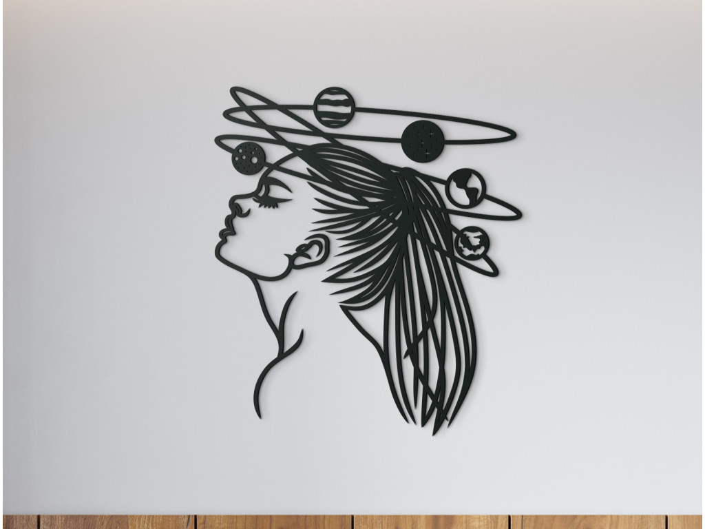 Vesmír je pre ľudí fascinujúci a neprebádaný. Ponúkame vám modernú nálepku ženy, okolo ktorej obiehajú planéty slnečnej sústavy. Toto umelecké vyobrazenie vnesie do interiéru jedinečnosť a eleganciu. Minimalistický dizajn sa bude hodiť do obývačky, spálne, predsiene aj chodby.