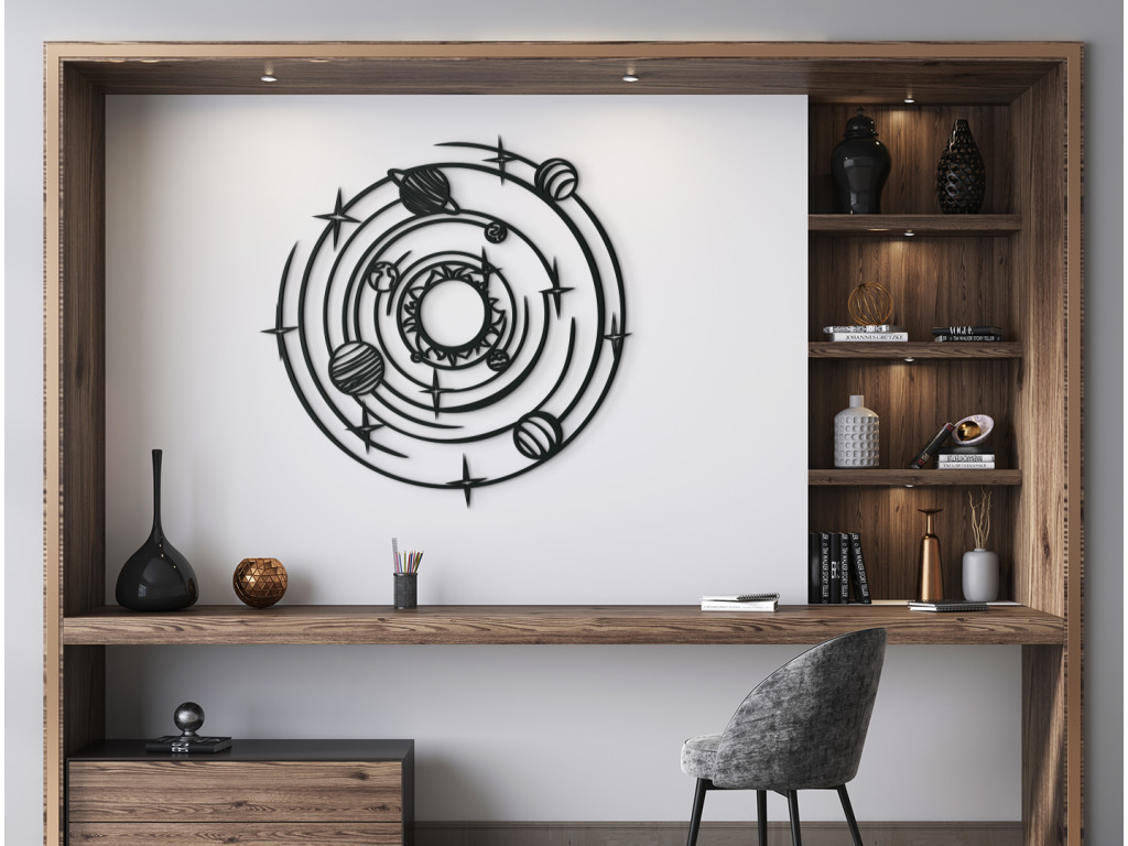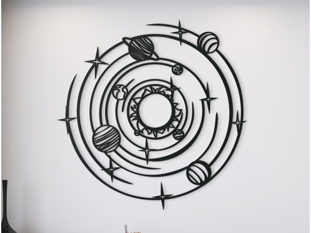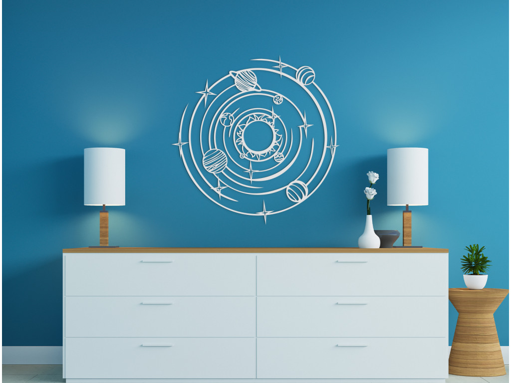 Slnečná sústava je planetárny systém, ktorého súčasťou je aj naša Zem. Dekorácia s týmto motívom zobrazuje všetky planéty slnečnej sústavy, vrátane Slnka. Minimalistický dizajn sa bude hodiť do obývačky, spálne, predsiene aj chodby.