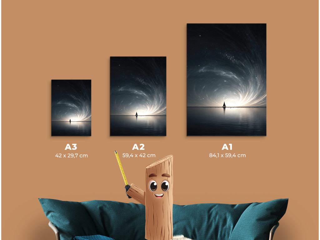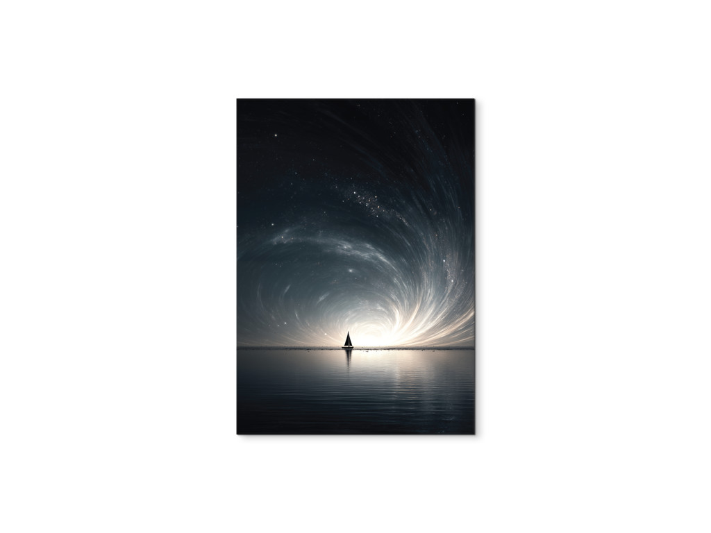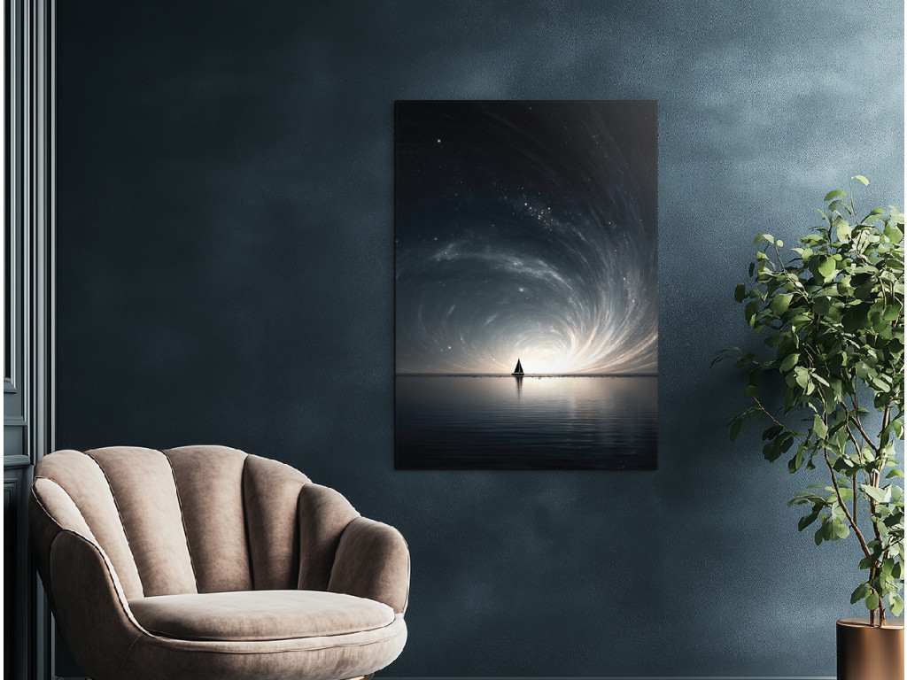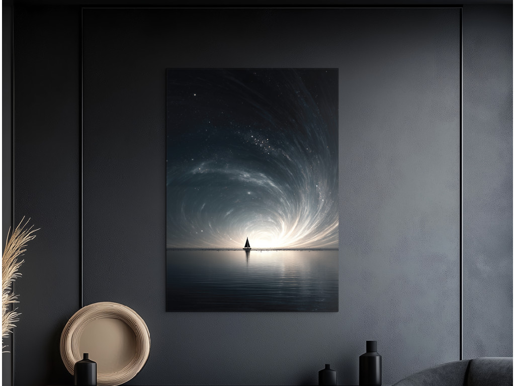 L'image d'un voilier solitaire sous un ciel étoilé tourbillonnant donne une impression de rêve et de tranquillité. Le contraste entre l'eau calme et le ciel dramatique et lumineux crée un sentiment de liberté et de contemplation. Grâce à l'impression UV, les couleurs et le mouvement du ciel ressortent particulièrement bien et le tableau convient surtout à une chambre à coucher ou un salon pour les amateurs de motifs poétiques.