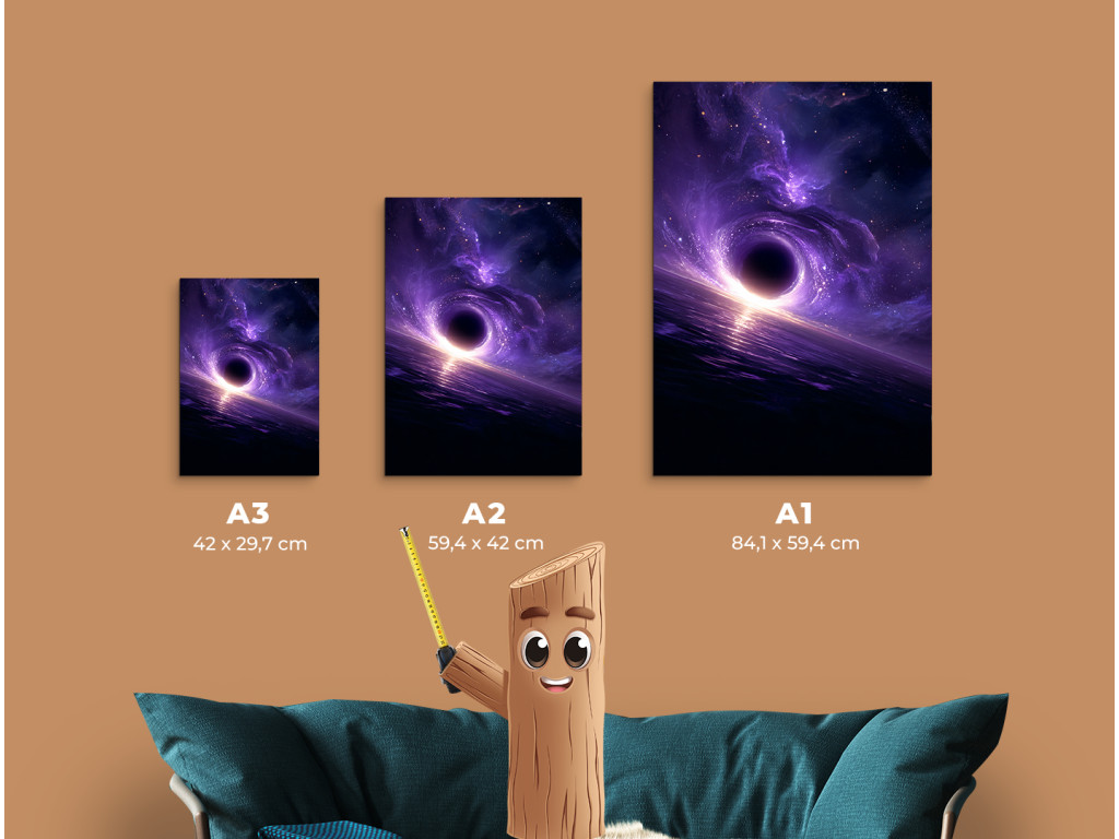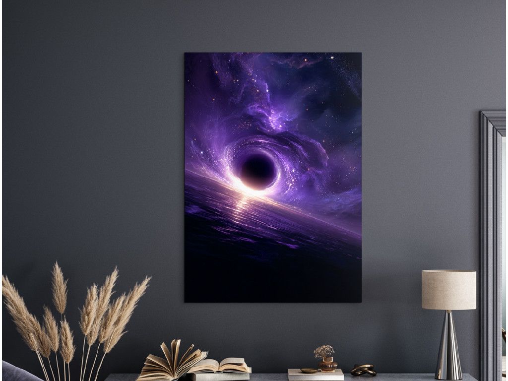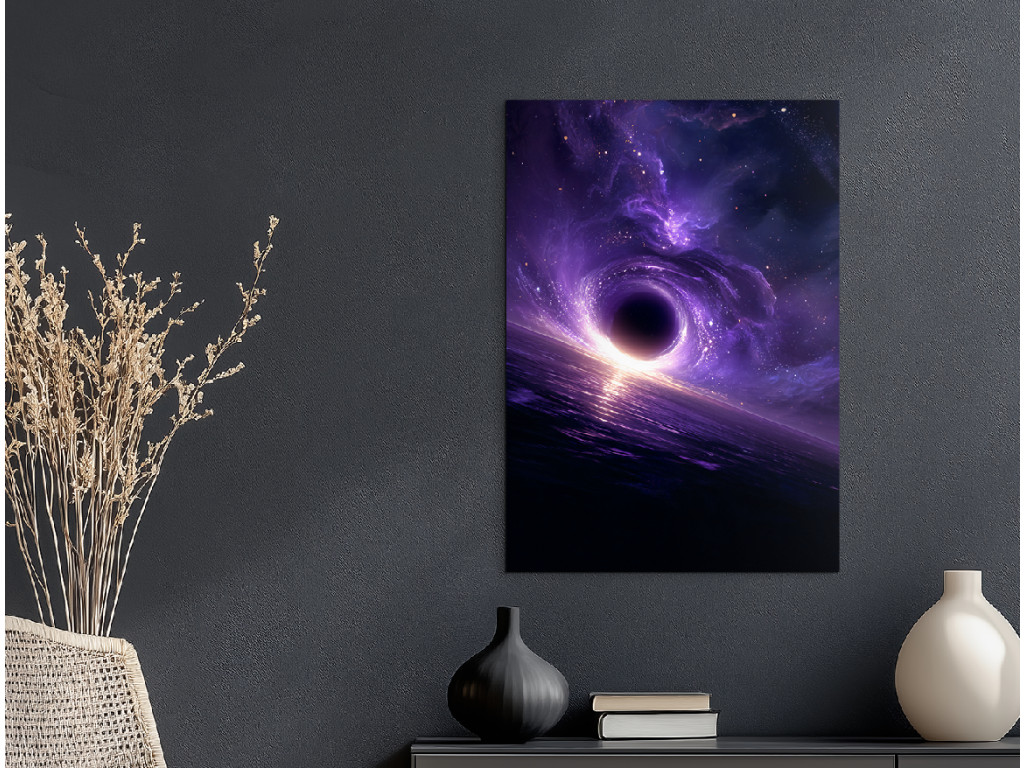 La visualisation artistique d'un trou noir capture la frontière au-delà de laquelle il n'y a plus de retour ni de lumière. Le centre sombre et la courbure dramatique de l'espace créent une atmosphère mystérieuse et intense. L'impression UV fait ressortir le contraste et la profondeur de l'image, qui convient à un intérieur moderne ou à un bureau pour les amateurs de science, d'espace et de motifs abstraits.