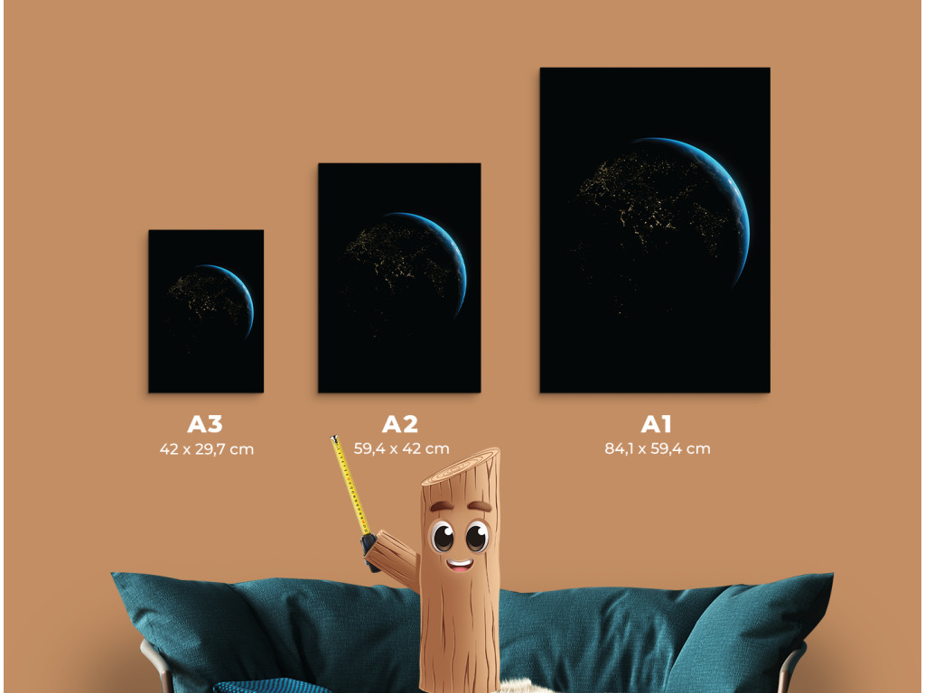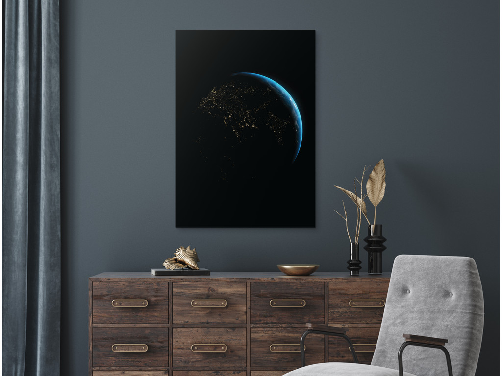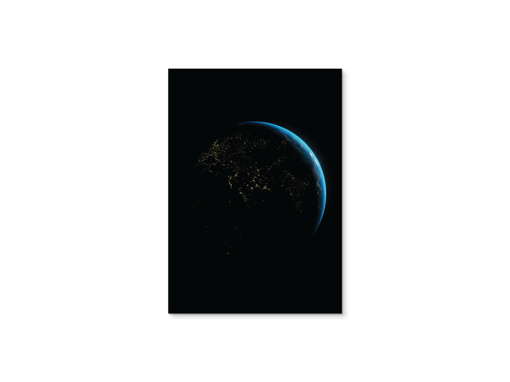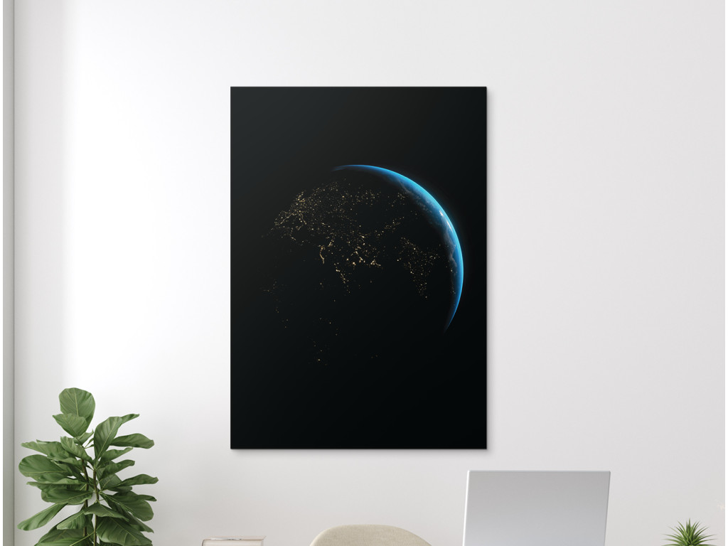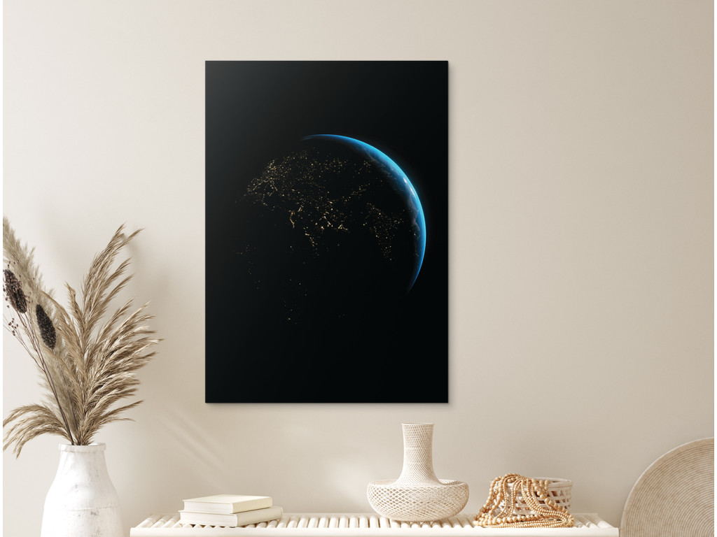 L'image de la Terre la nuit vue de l'espace révèle un réseau de lumières urbaines qui soulignent la présence humaine sur la planète. La douce lueur bleue de l'atmosphère contraste avec l'obscurité de la face nocturne de la Terre et ajoute de la profondeur à l'image. Grâce à l'impression UV, l'image est pure et moderne et convient à un bureau, une salle de travail ou un intérieur à caractère technologique ou spatial.