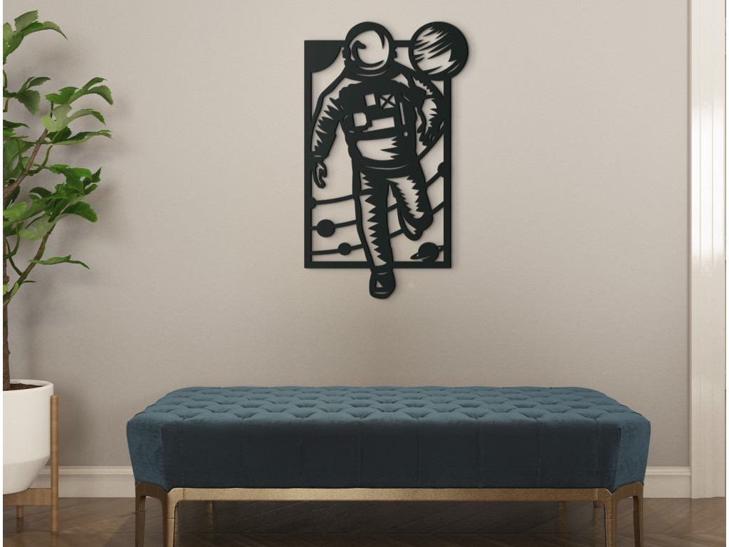 Obrazy s témou vesmíru prinášajú do interiéru originálnosť. Takým je aj drevený obraz Astronaut, ktorý si môžete vybrať z viacerých farebných odtieňov. Vznášajúci sa astronaut vo vesmíre akoby vychádza z rámu obrazu. Za ním sa nachádzajú planéty slnečnej sústavy. Hodí sa do obývačky, detskej izby aj spálne.