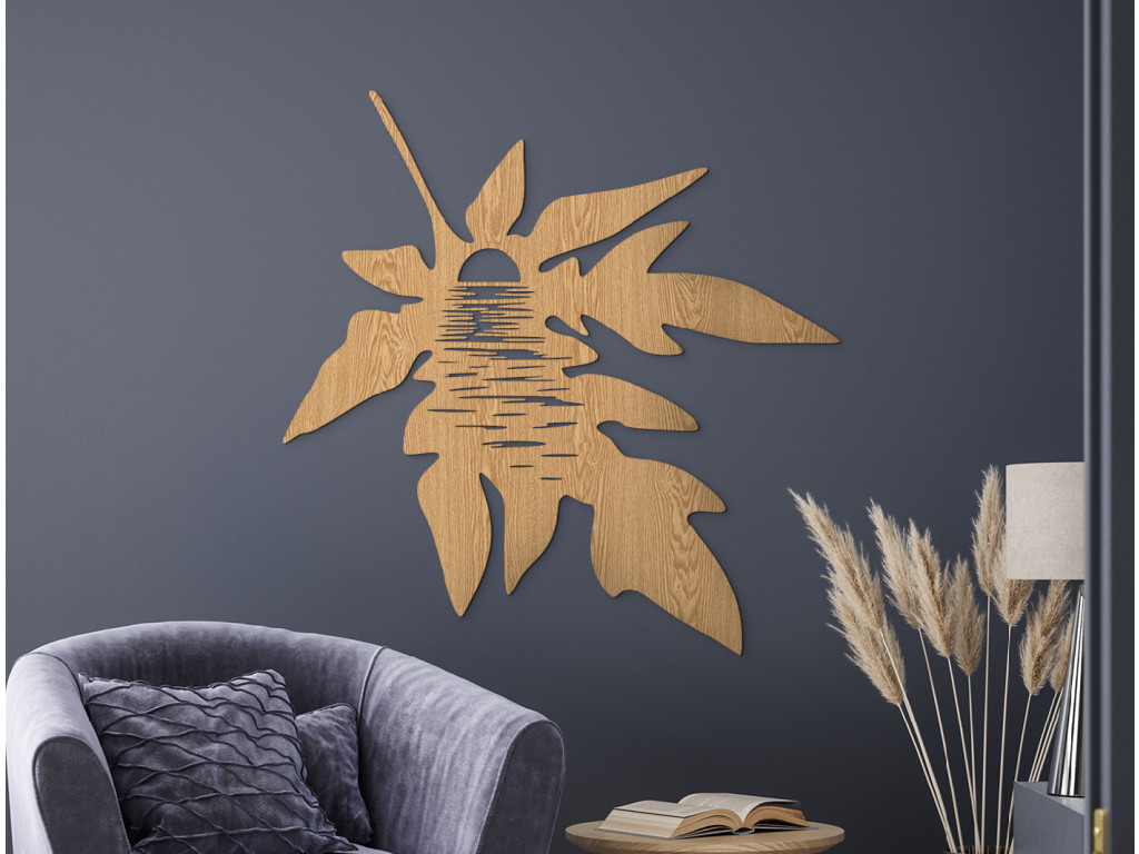 La décoration en bois Coucher de soleil dans une feuille apporte à votre intérieur un motif paisible et naturel qui allie la beauté du coucher de soleil à l'élégance d'une feuille. Les détails délicats et les formes dynamiques créent un effet visuel harmonieux et apaisant. Idéale pour les salons, les bureaux ou les halls d'entrée, elle apporte une touche délicate et inspirante à la pièce.