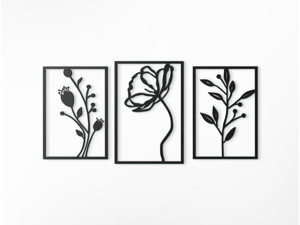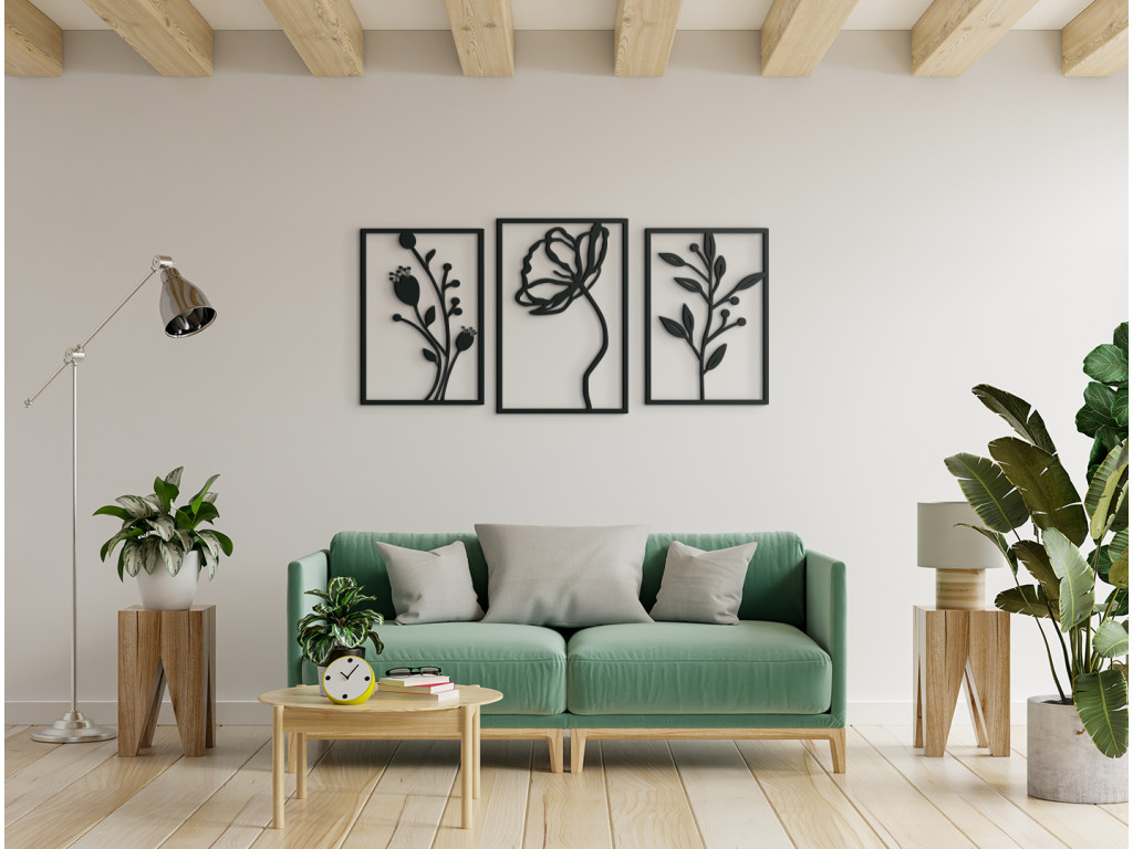 Nalepte si na stenu kvety, ktoré vám budú robiť spoločnosť aj počas najtuhších mrazov. Tri drevené obrazy ponúkajú pohľad na poľné kvety, ako je napríklad bodliak alebo divý mak. Elegantný dizajn obrazov ich predurčuje do moderného, retro i tradične zariadeného interiéru.