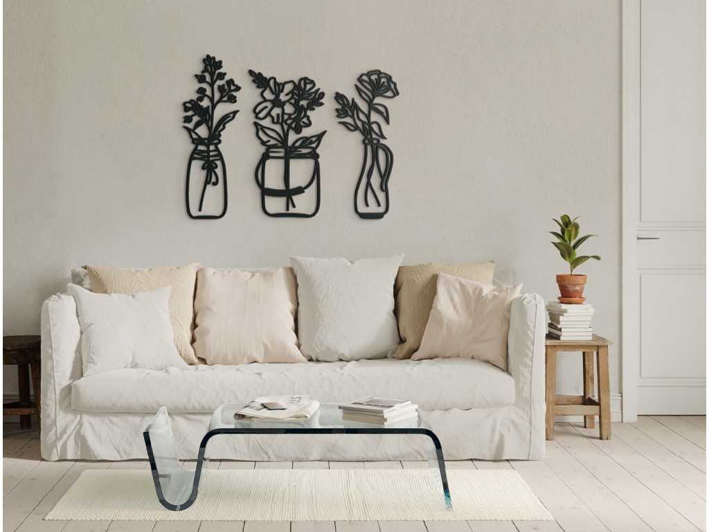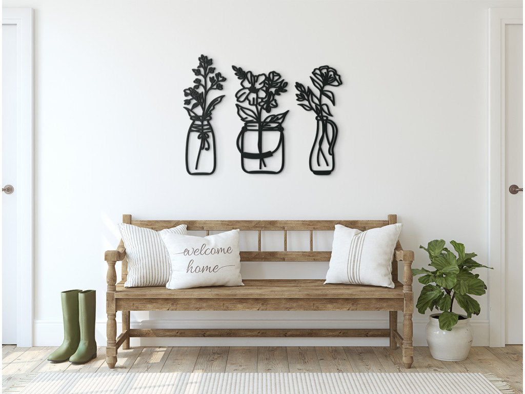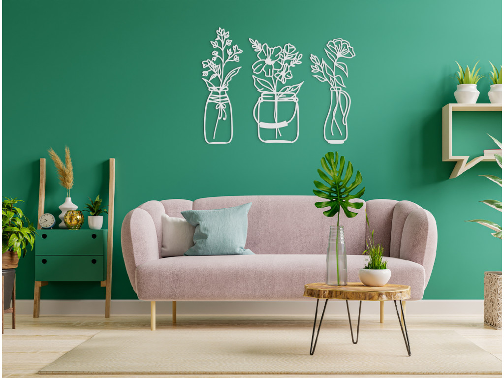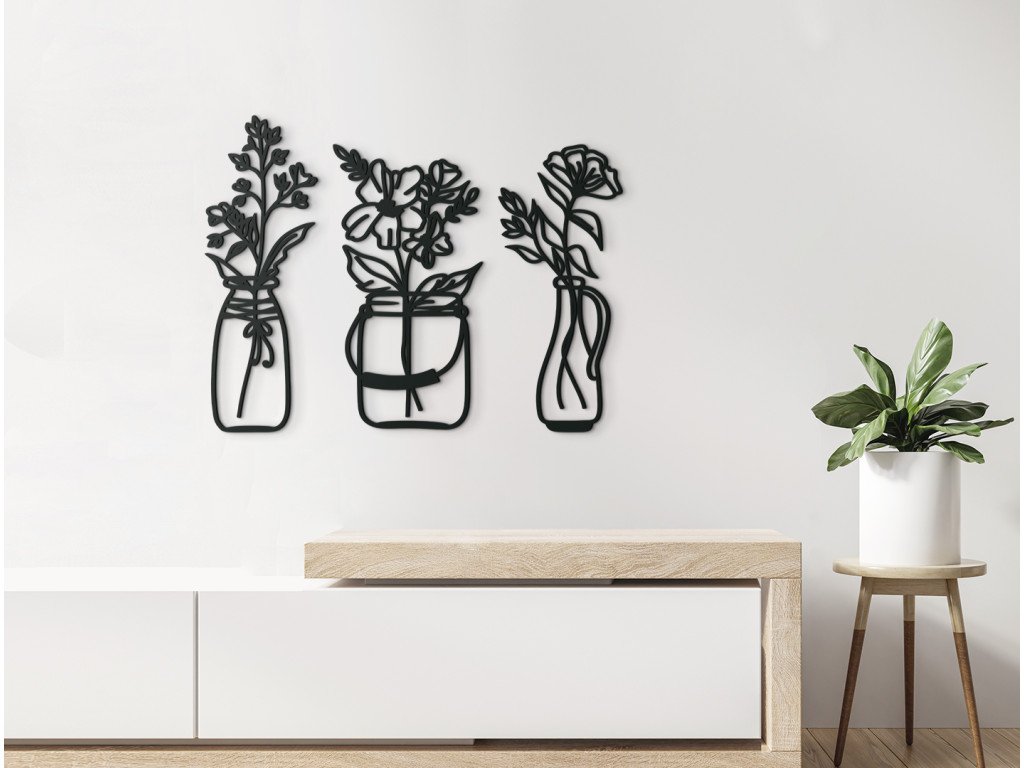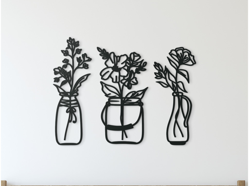 Skrášlite interiér elegantnými kvetmi vo váze. Pokiaľ nebudete mať doma tie živé, ozdobu vám budú robiť drevené kvety. Moderná dekorácia sa skladá z 3 dielov. Každá váza ma iný tvar, preto na stene obraz vynikne. Dekorácia je vhodná do jedálne, kuchyne, chodby aj obývačky.