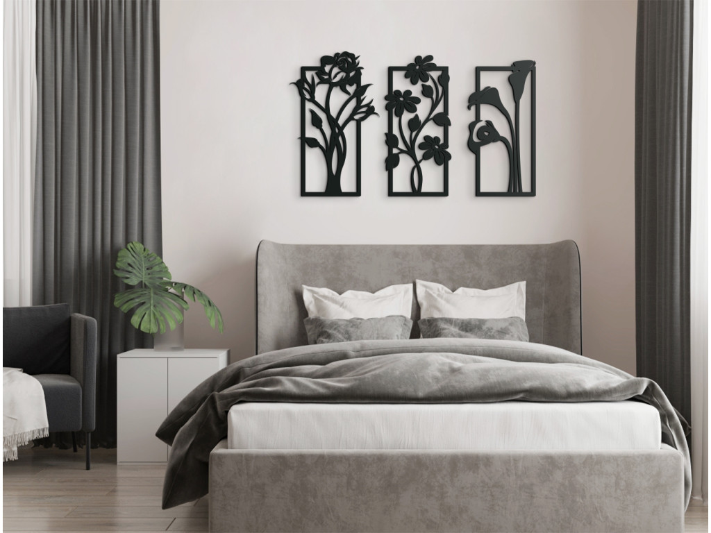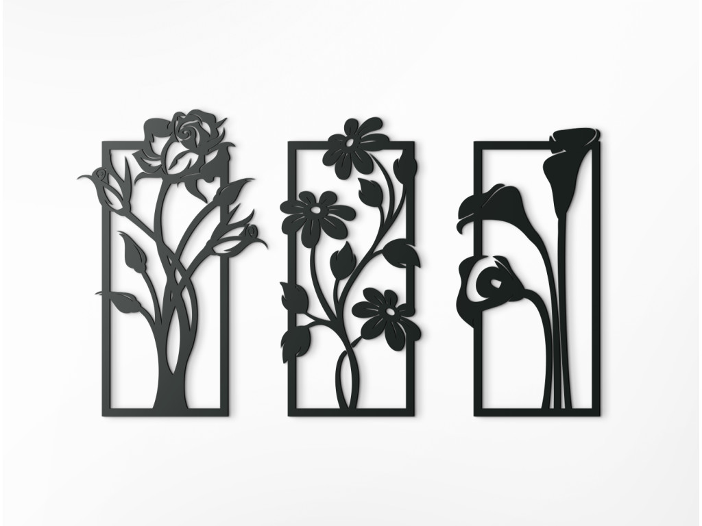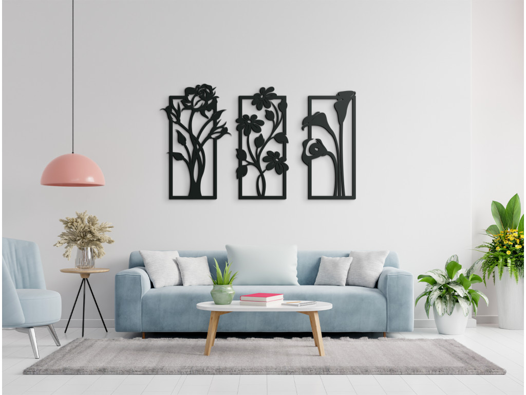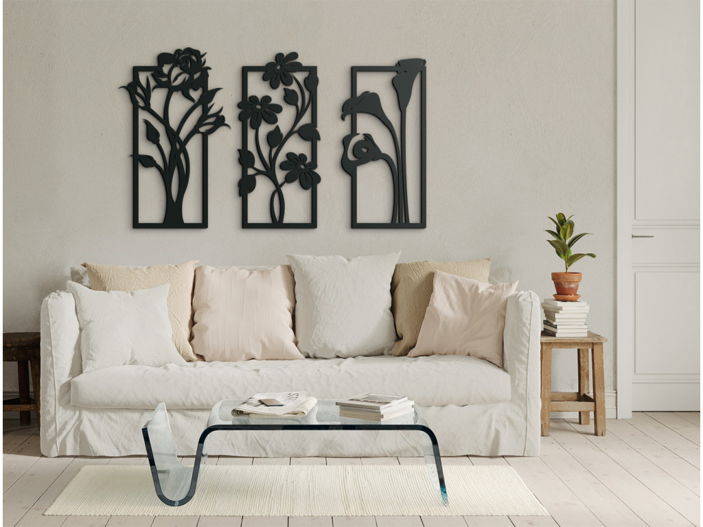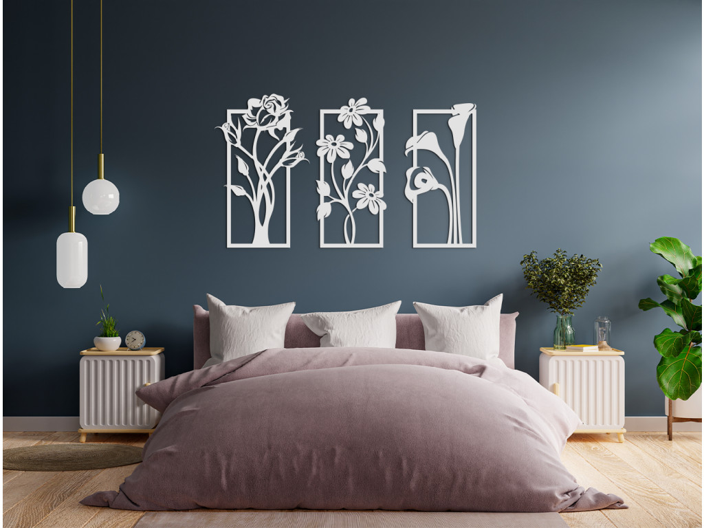 3D obraz vnesie do interiéru elegantný a moderný dizajn. Skladá sa z 3 dielov, pričom na každom je vyobrazený iný kvet. Prvý diel vyobrazuje ruže, na druhom sa nachádzajú obľúbené margarétky, a v treťom obraze sú kaly. Jednotlivé diely môžete zavesiť spolu ako jeden obraz alebo jednotlivo podľa miestností. Drevený obraz je doplnkom, z ktorého sa budete tešiť dlho. Je tiež vynikajúcim darčekom pre milovníčku kvetov.