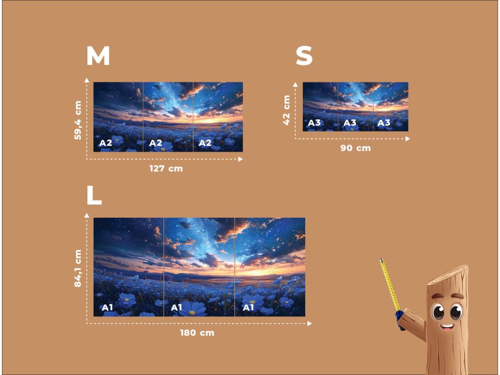 Le prix indiqué comprend les trois parties du tableau présentées sur la photo. Le produit est livré sous forme d'un ensemble de trois pièces au format A1 / A2 / A3 (au choix).