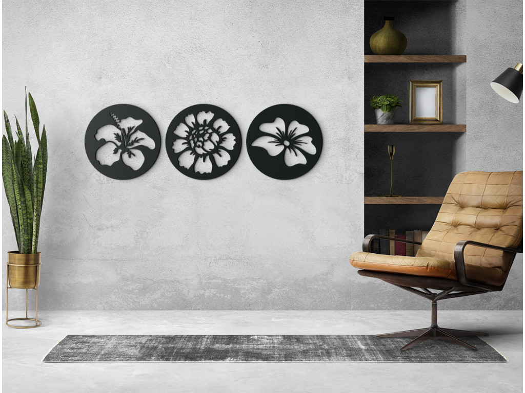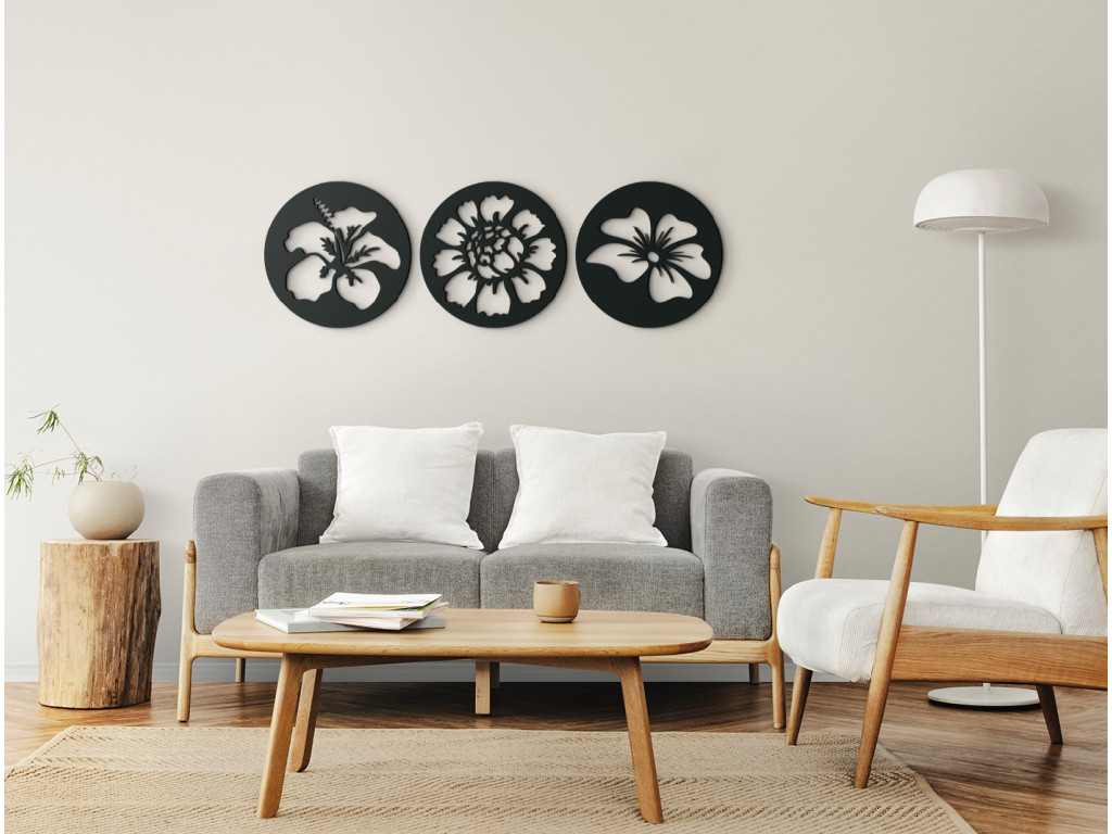 Tableau en bois Fleurs composé de 3 parties. Ce tableau sculpté s’intègre parfaitement dans le salon, la cuisine, le couloir ou l’entrée. Sa forme ronde et ses détails raffinés apportent à la pièce une atmosphère chaleureuse. Une fois accroché au mur, il crée un subtil effet 3D.