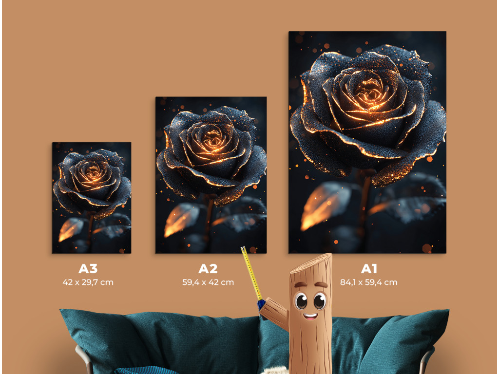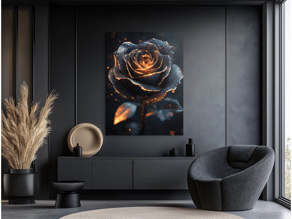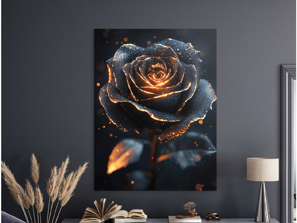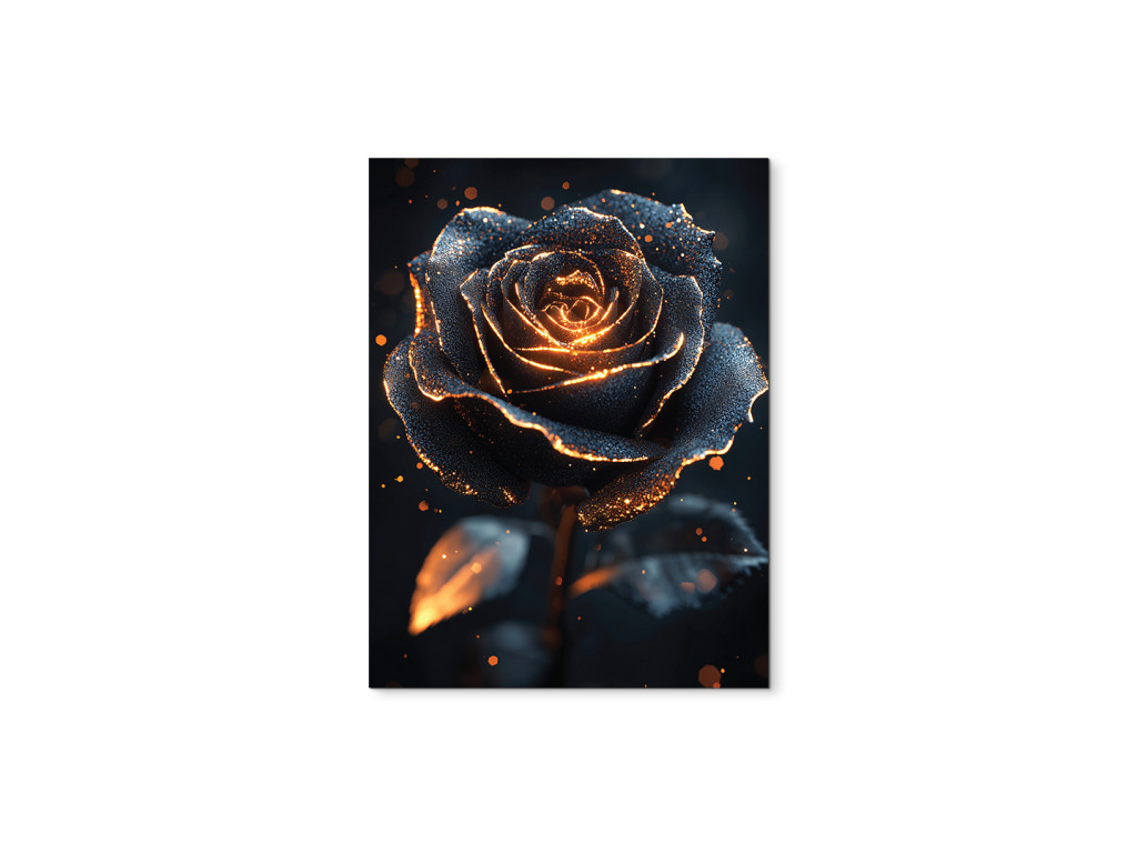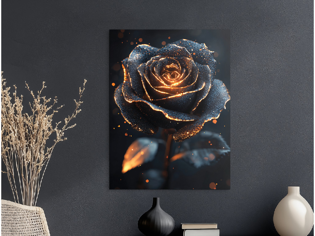 Mystical Rose est un tableau sombre et impressionnant qui capture une rose noire unique, illuminée par une douce lueur, comme si elle pulsait de lumière ou reflétait le soleil couchant. La combinaison de l'ombre et de la lumière crée un contraste puissant tout en installant une atmosphère mystérieuse et profonde. Idéal pour les pièces où vous souhaitez souligner le caractère, l'intimité et une esthétique distinctive, par exemple dans une chambre à coucher, un bureau ou un coin artistique.