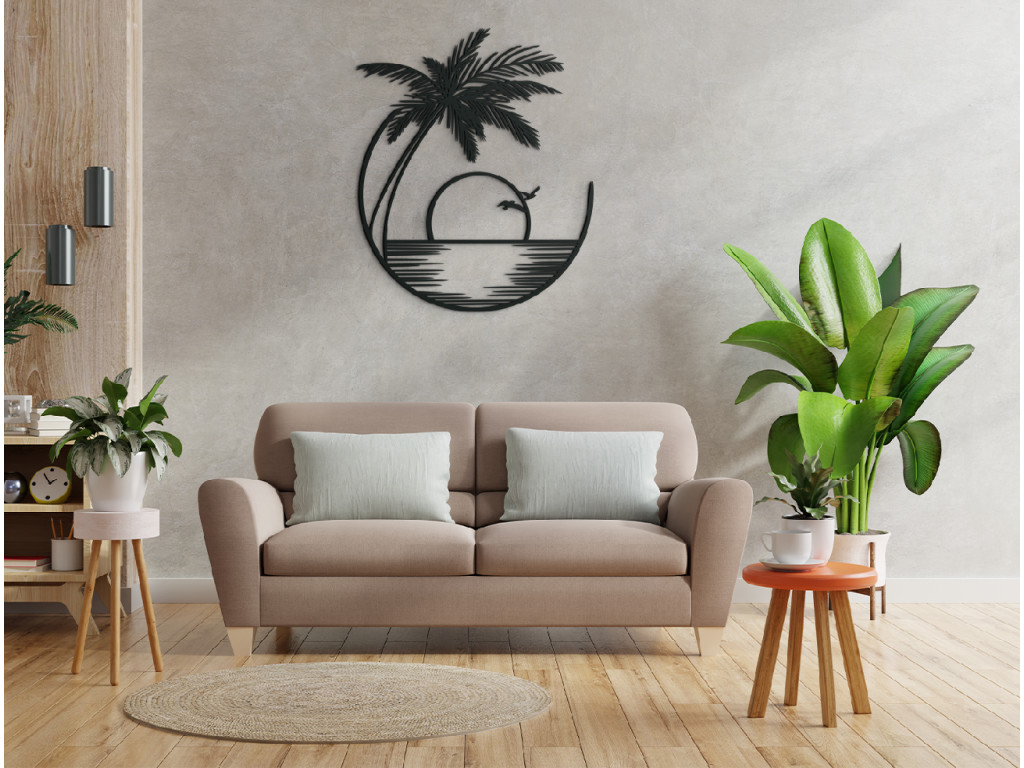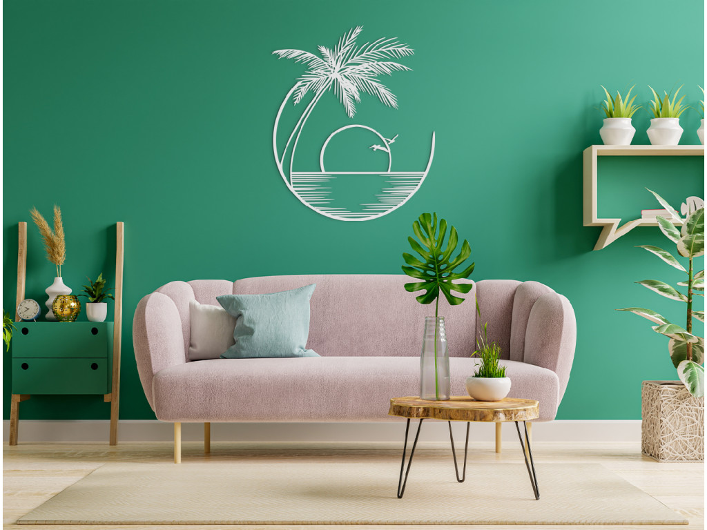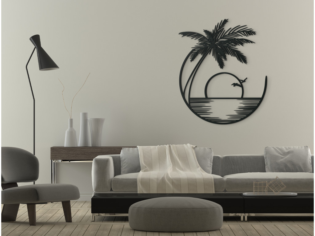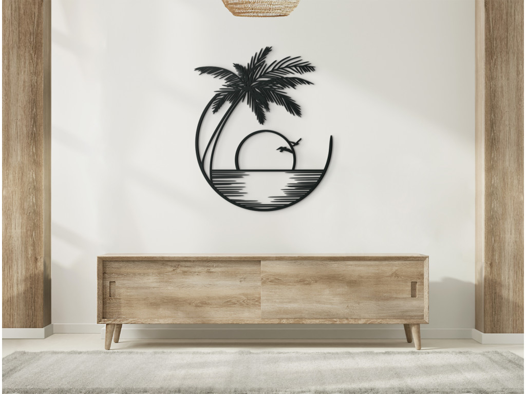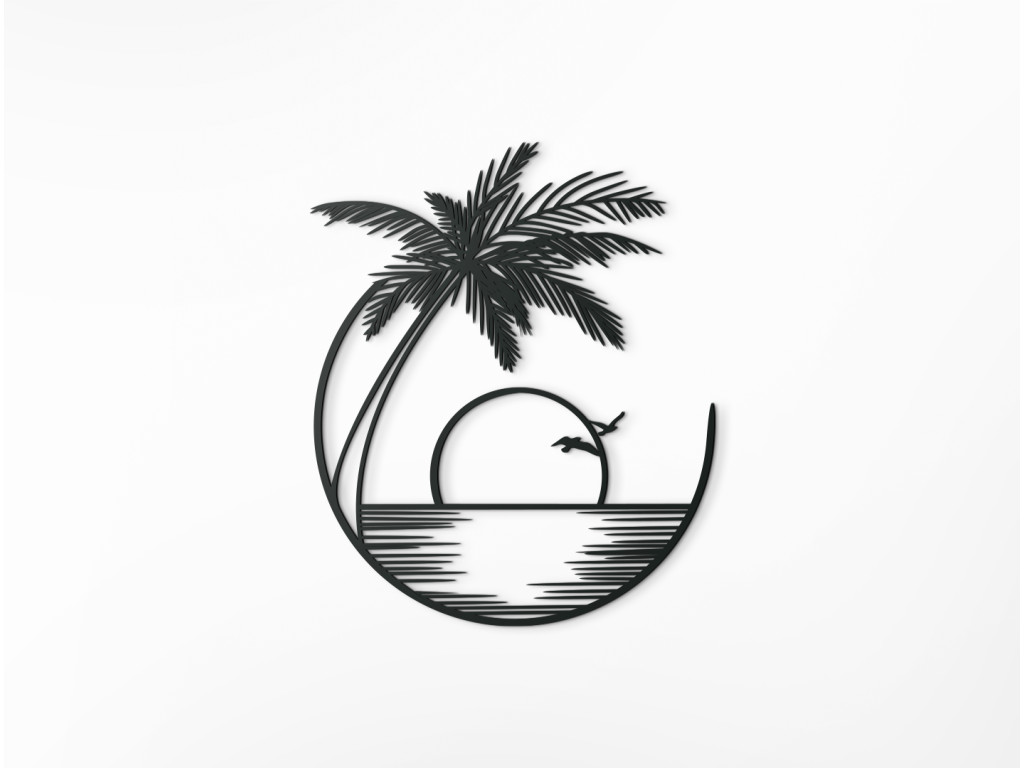 Le tableau en bois Coucher de soleil représente la mer et un palmier exotique. Son design simple en fait une décoration adaptée à n'importe quelle pièce. Ce tableau au design minimaliste est fabriqué avec des matériaux de qualité. Vous pouvez choisir parmi plusieurs coloris.