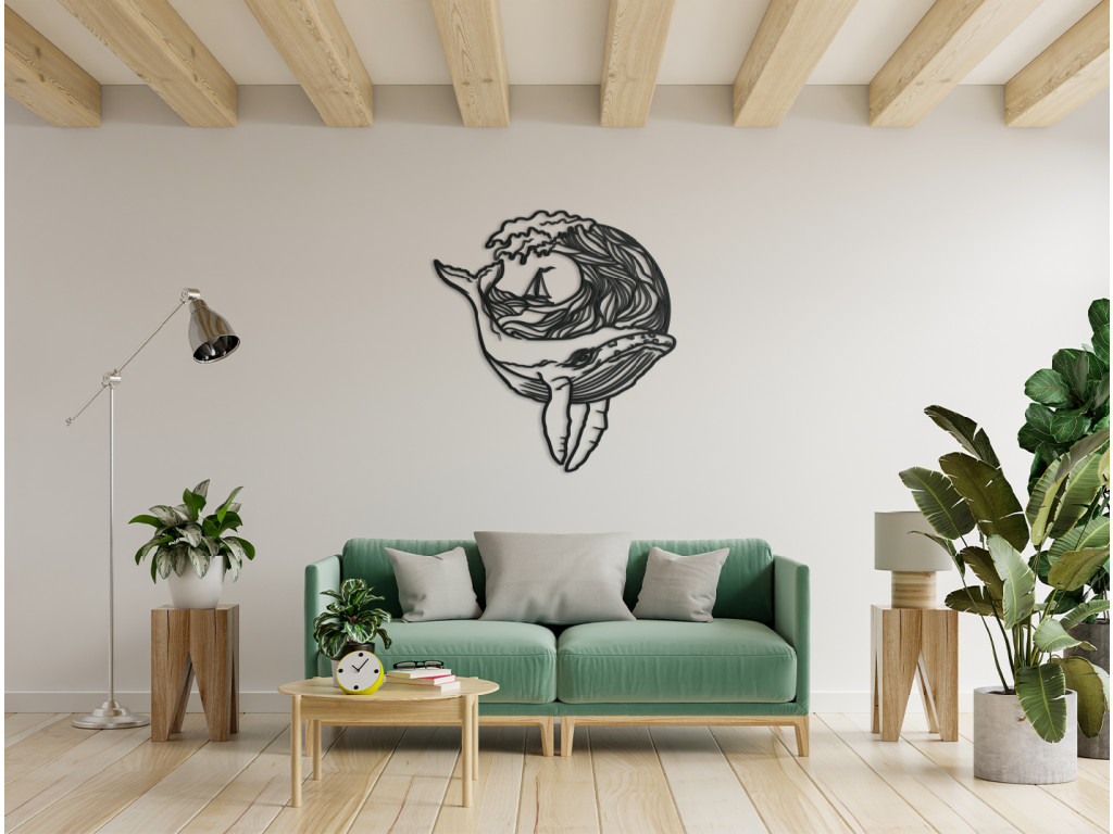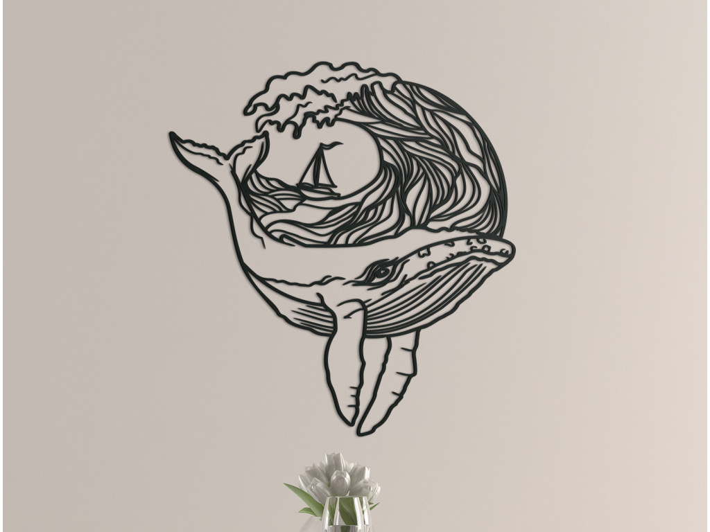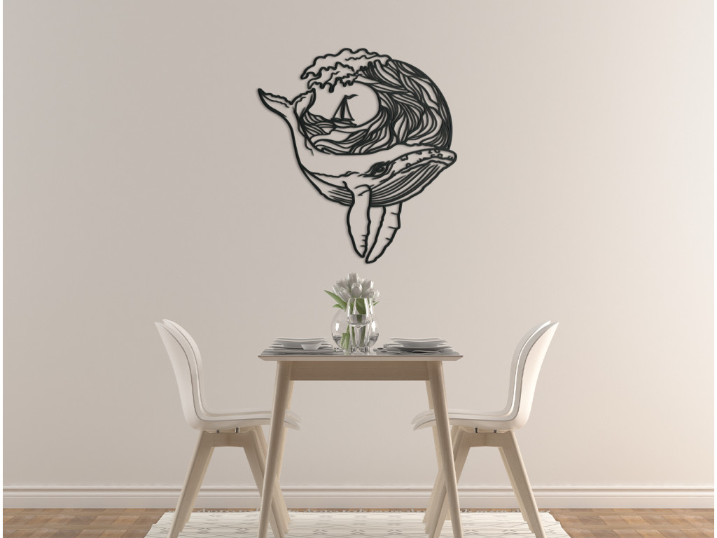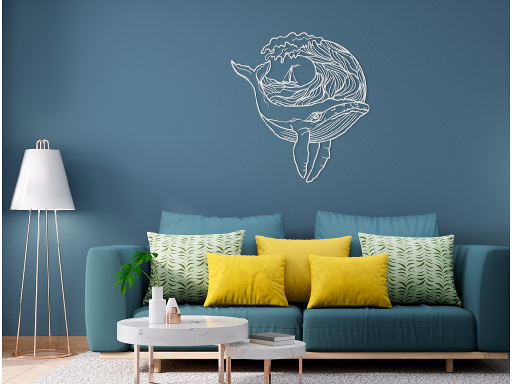 Cette baleine apportera un design original à votre intérieur et le rendra unique. Vous pouvez accrocher ce tableau dans toutes les pièces de la maison. Vous pouvez facilement l'assortir à un mobilier moderne et à d'autres accessoires. Convient à tous les voyageurs et amoureux de la mer.