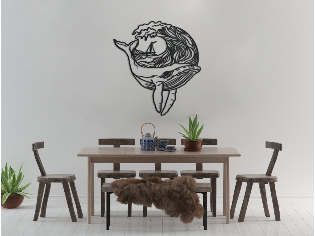 Veľryby patria medzi veľké cicavce, ktoré žijú v moriach a oceánoch. V tomto dekore veľryba pláva popod veľké rozbúrené vlny. Drevený obraz sa bude hodiť do modernej obývačky, spálne detskej izby aj chodby. Vybrať si môžete z viacerých farebných variantov.