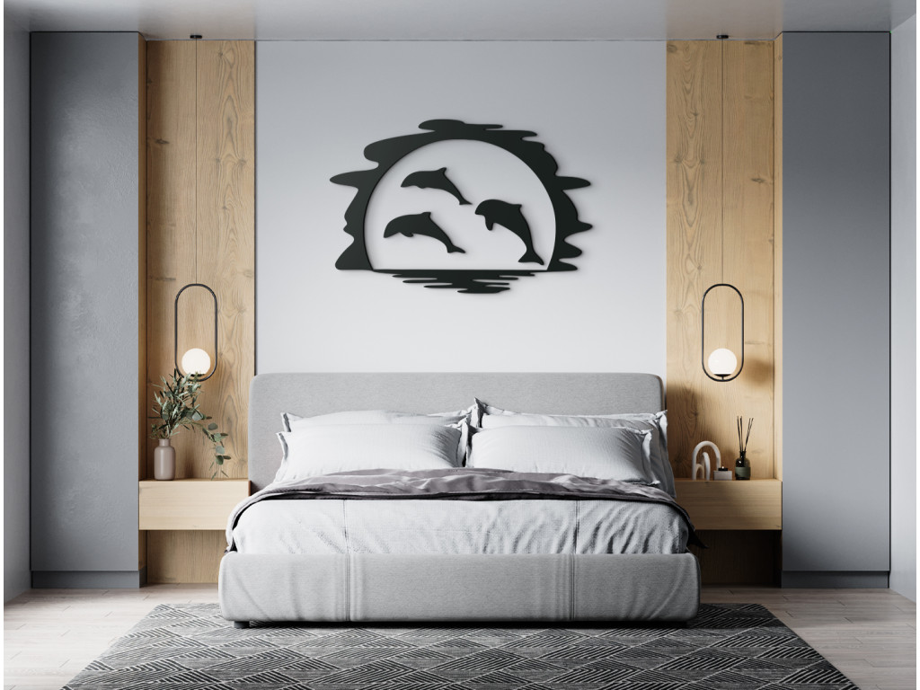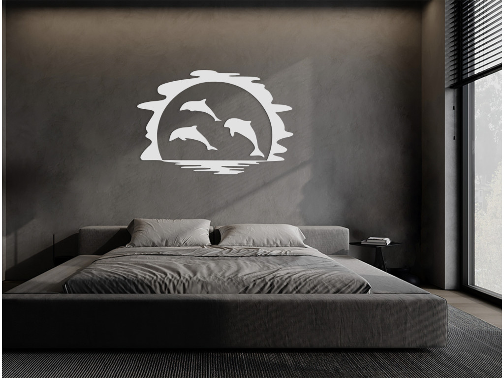 Les dauphins créent une atmosphère paisible. Sous forme de décoration murale, vous pouvez les accrocher dans une chambre d'enfant, une chambre à coucher ou un bureau, bref partout où vous avez besoin de vous concentrer ou de vous détendre. Les dauphins sautent au coucher du soleil, ce qui donne à la décoration une touche romantique.