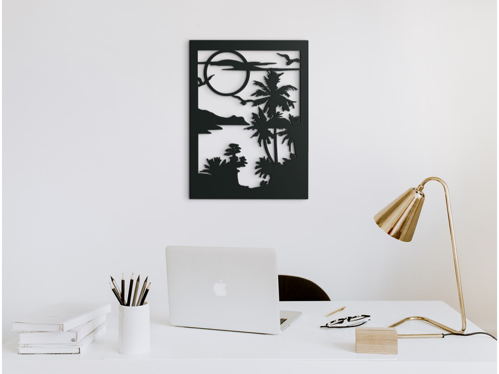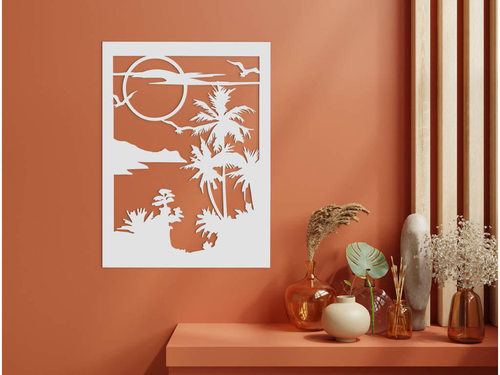 Une région chaude, calme et relaxante. C'est l'impression que vous donnera le tableau en bois Exotica, représentant des palmiers, la mer et un grand soleil. Il convient à toutes les pièces : bureau, salon, couloir ou chambre à coucher. Grâce à ce thème, votre intérieur dégagera une atmosphère chaleureuse et originale.