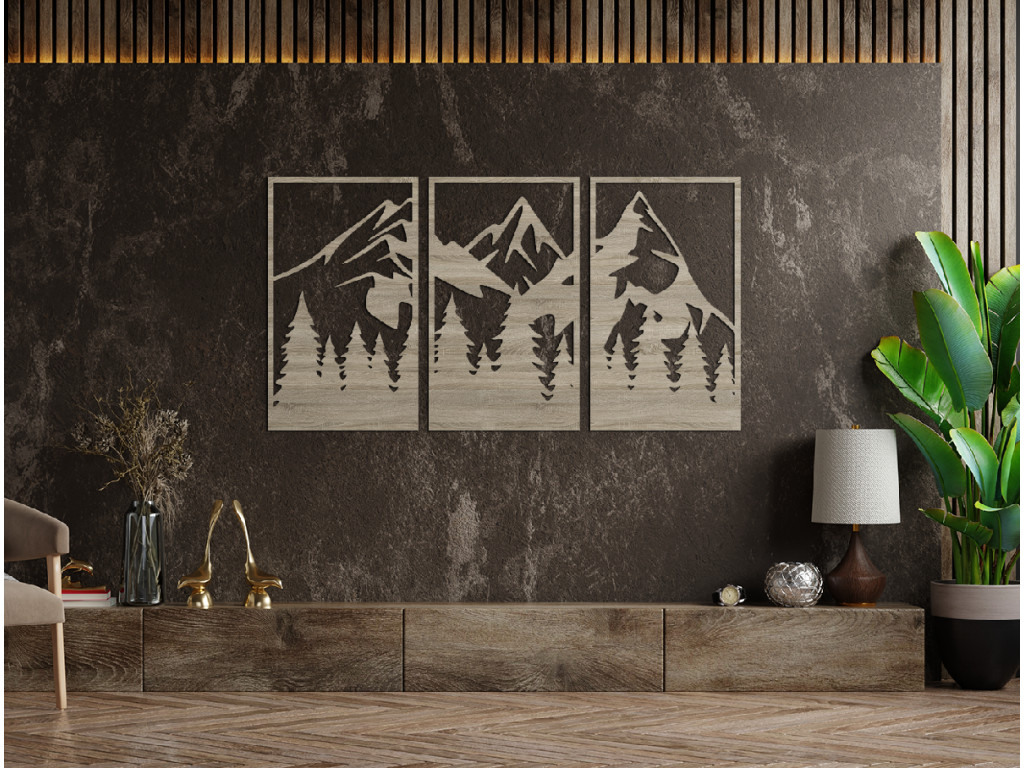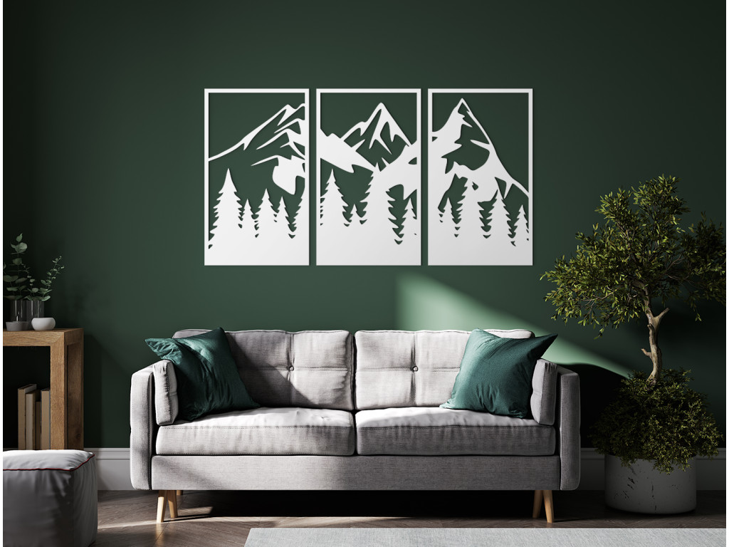 Le tableau sculpté Montagnes au-dessus de la forêt apporte élégance et intemporalité à votre intérieur. Il convient à toutes les pièces, bureaux, appartements et autres espaces. Le tableau est composé de 3 parties qui forment ensemble une vue harmonieuse sur les montagnes. Vous pouvez choisir parmi plusieurs couleurs et dimensions. Apportez une touche de nature grâce à cet effet 3D au mur.