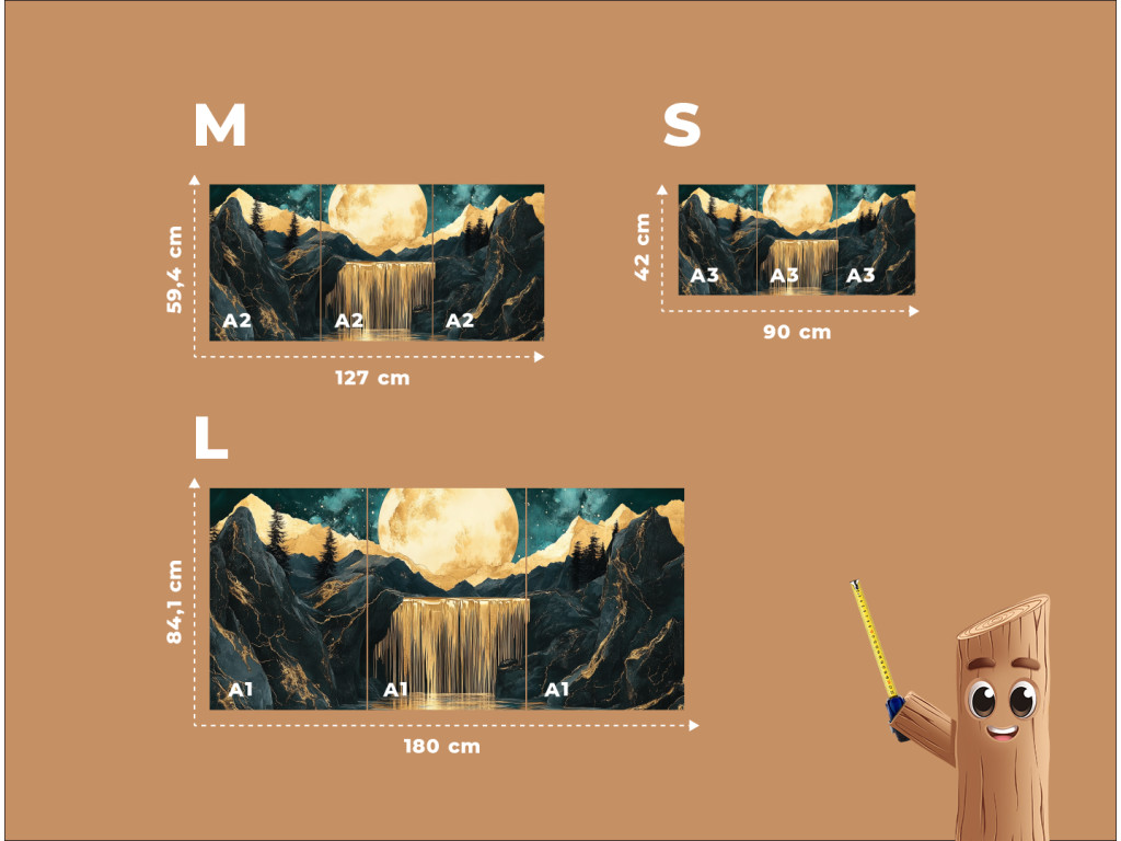 Le prix indiqué comprend les trois parties du tableau présenté sur la photo. Le produit est livré sous forme d'un ensemble de trois parties au format A1 / A2 / A3 (au choix).