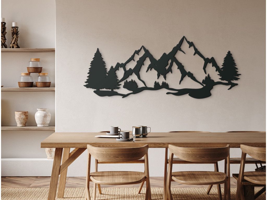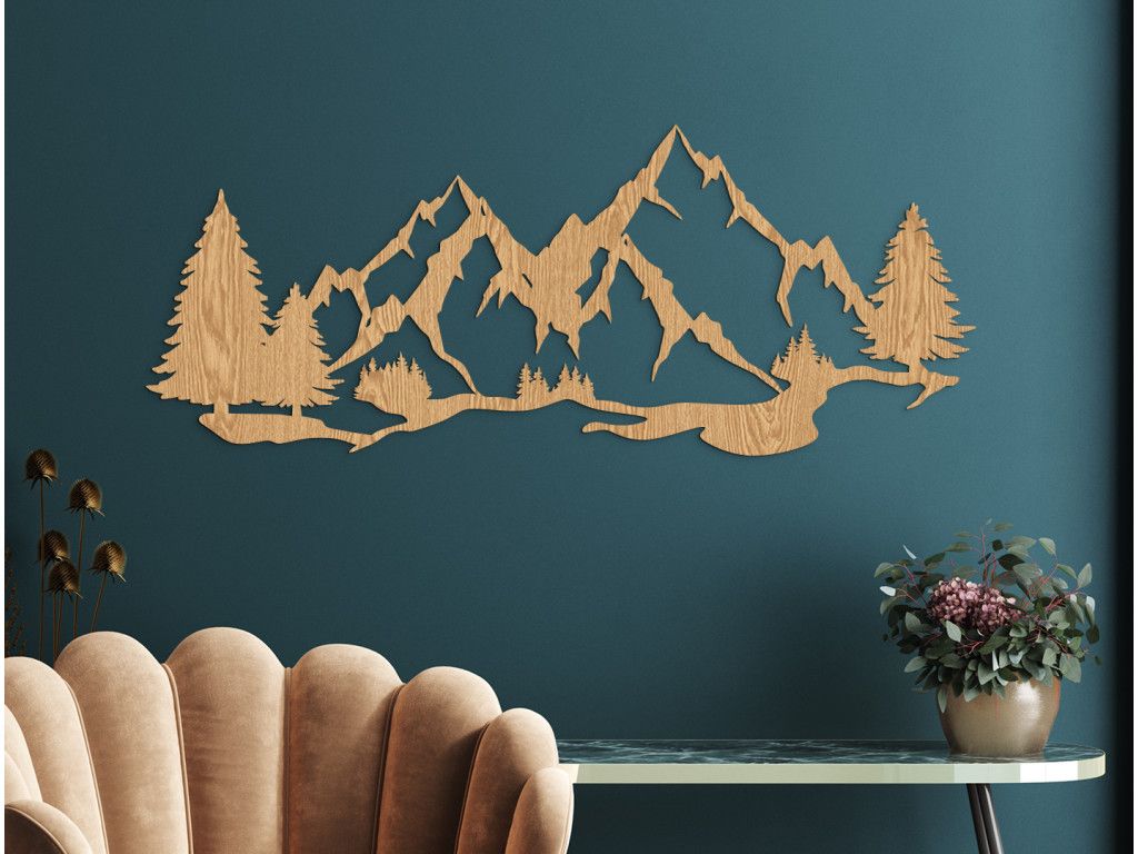 Vous aimez passer du temps dans la nature ? Dans ce cas, vous allez adorer ce tableau sculpté Montagnes et arbres. Il représente un morceau de nature magnifique et capture les moindres détails des montagnes qui s'élèvent au-dessus des prairies et des forêts.