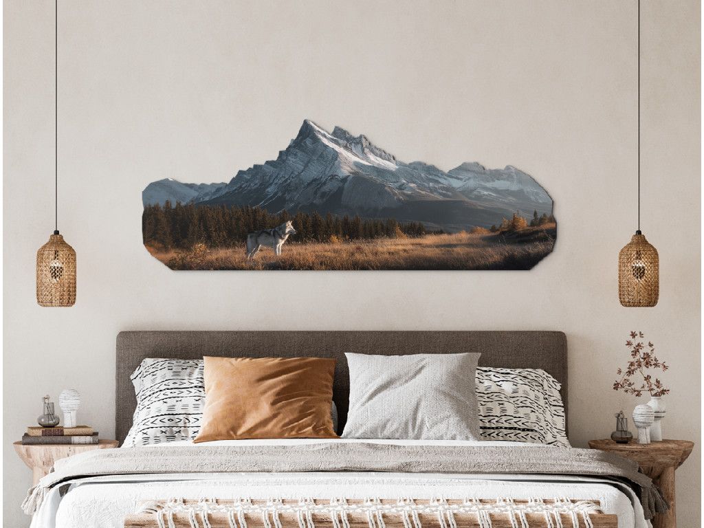 L'impressionnante peinture représentant un loup debout dans une prairie devant des montagnes enneigées et une forêt dense dégage une impression de force, de calme et de vigilance. Le loup en alerte symbolise le courage et la liberté, tandis que la majestueuse chaîne de montagnes complète l'atmosphère dramatique. Ce tableau apportera à votre intérieur l'énergie de la nature sauvage et la force tranquille des montagnes.