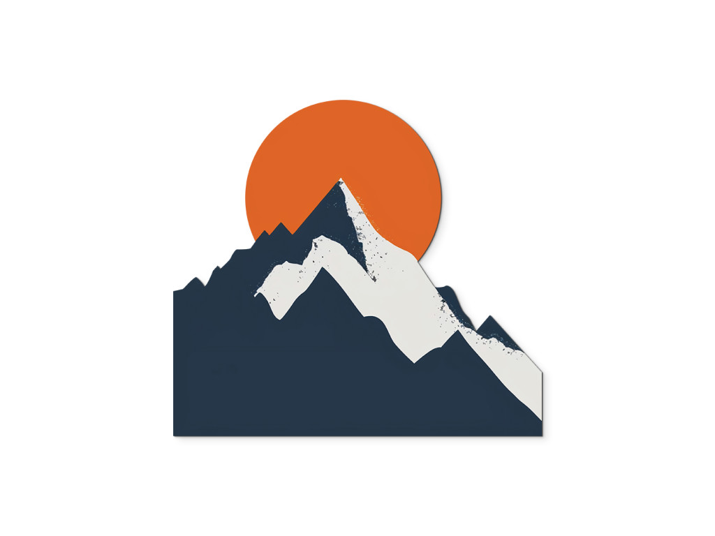 L'illustration minimaliste des montagnes avec le soleil en arrière-plan est pure et expressive, tout en étant riche en symbolisme. Les montagnes représentent la force, la persévérance et l'objectif, tandis que le soleil apporte un sentiment d'espoir et de nouveau départ. Ce visuel séduit par sa simplicité et son message fort sur le lien entre l'homme et la nature.