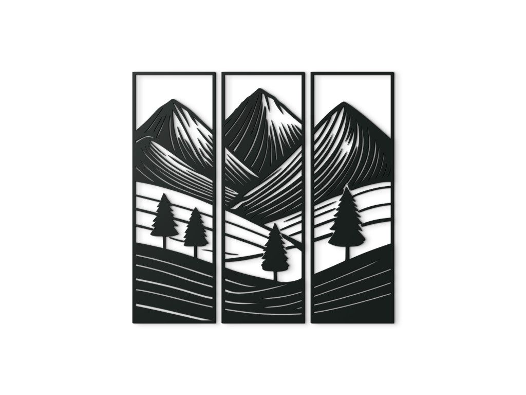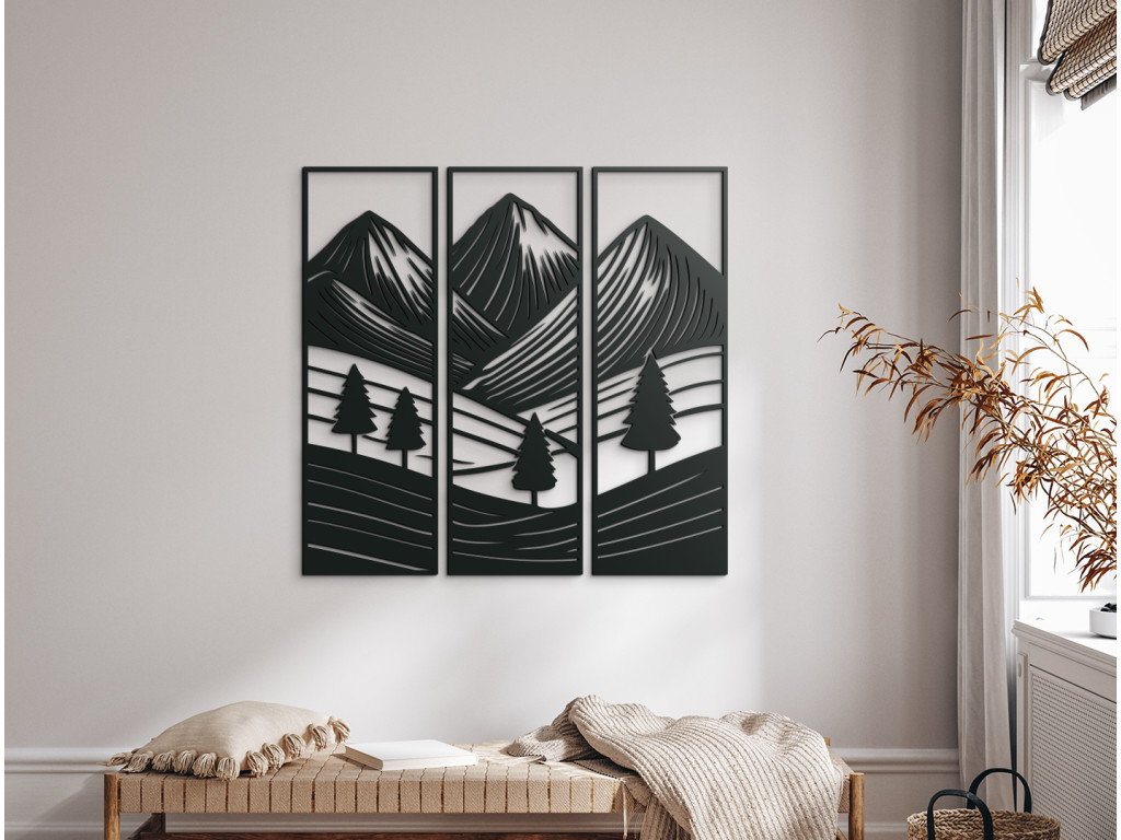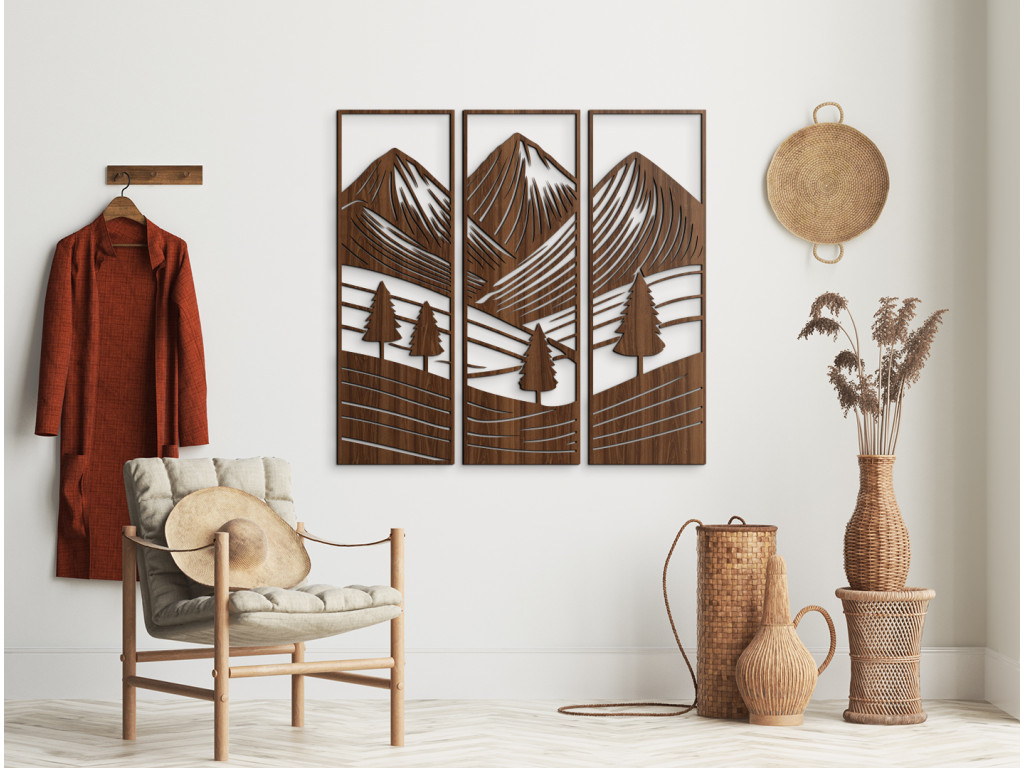 Obraz Prírodný pokoj je vyrobený v drevku s dôrazom na presnosť, detail a trvácnosť. Motív hôr, stromov a lúk vytvára pocit spojenia s prírodou a dodáva priestoru jedinečnú atmosféru. Originálny doplnok, ktorý zmení každú stenu na miesto plné pokoja a krásy.