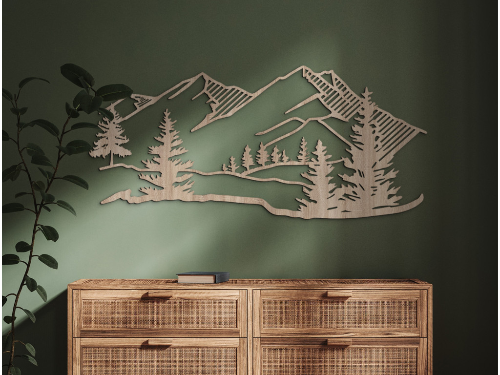 Moderný drevený obraz Hory a les je doplnkom, ktorý v interiéri zažiari. Obraz s neukončenými rámikmi zobrazuje stromy a hory. Jednoduchý dizajn sa bude hodiť do všetkých miestností v dome. Vybrať si môžete z viacerých odtieňov a rozmerov.