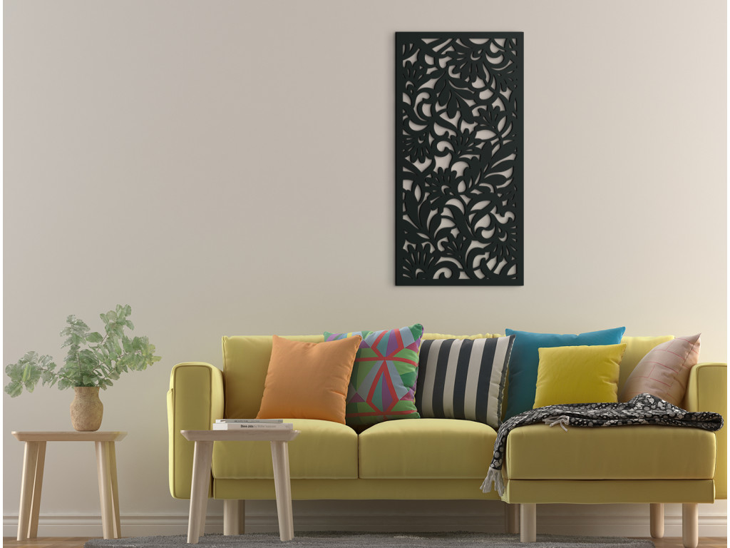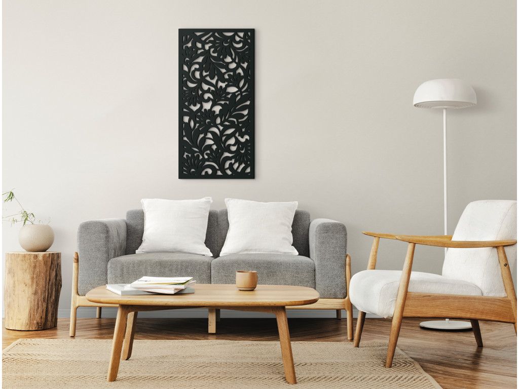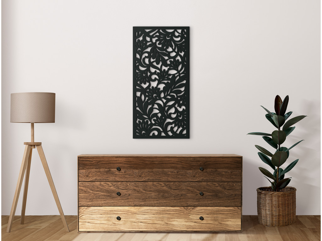 Ak máte radi jemne a precízne vypracované detaily, drevený panel Popínavé kvety bude pre vás ako stvorený. Klasický obdĺžnikový rám je husto vyplnený filigránskymi kvetmi a listami, takže na prvý pohľad pripomína pergolu porastenú zakvitnutou zeleňou.