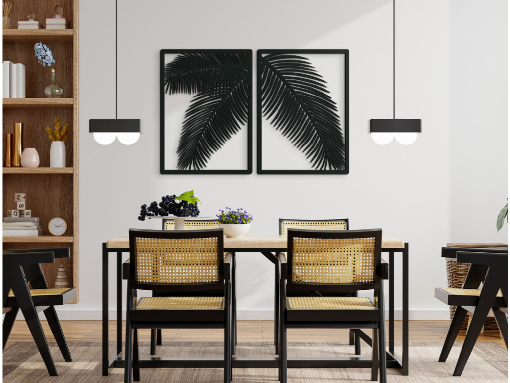 Le tableau en bois Feuilles de palmier, composé de 2 parties, apportera une atmosphère agréable et design à votre intérieur. Il se distingue dans les intérieurs modernes comme classiques. Les différentes parties sont reliées entre elles, mais peuvent également être accrochées séparément selon vos préférences.