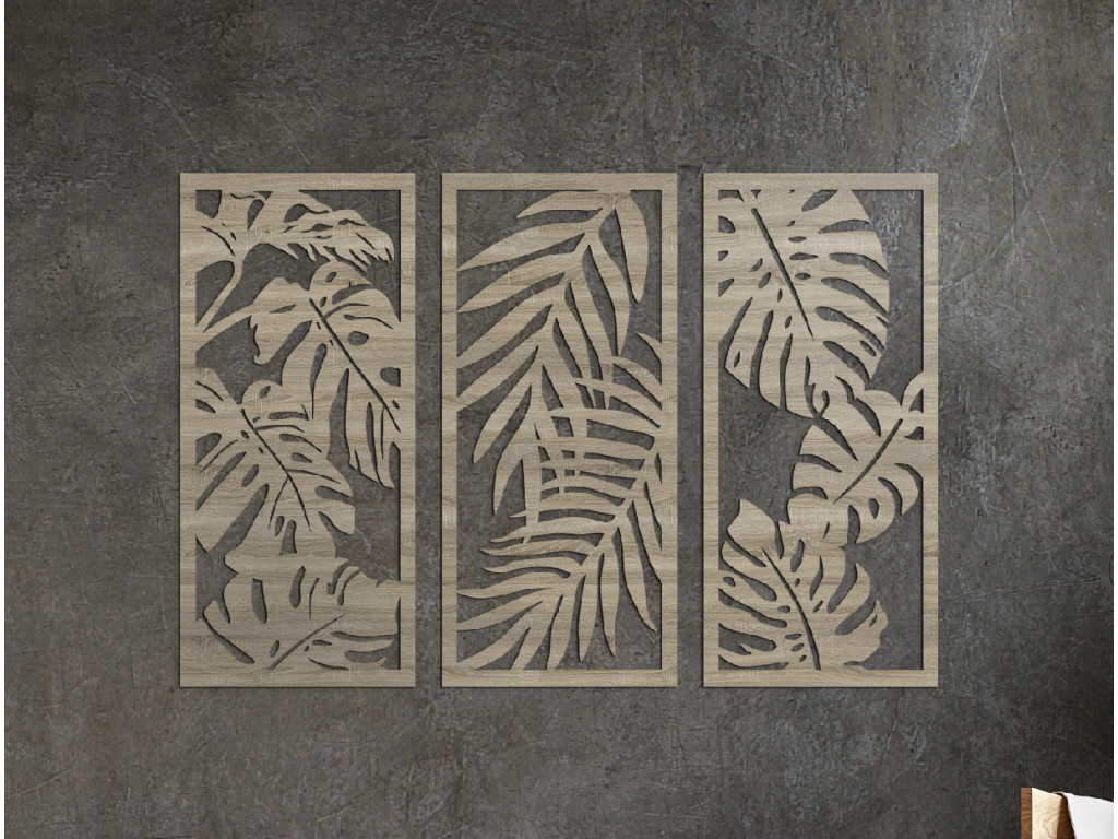 3-dielny drevený obraz Rastliny