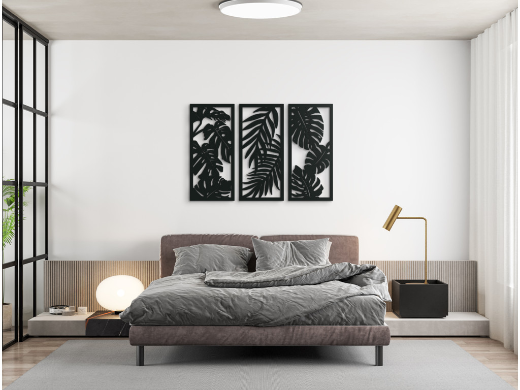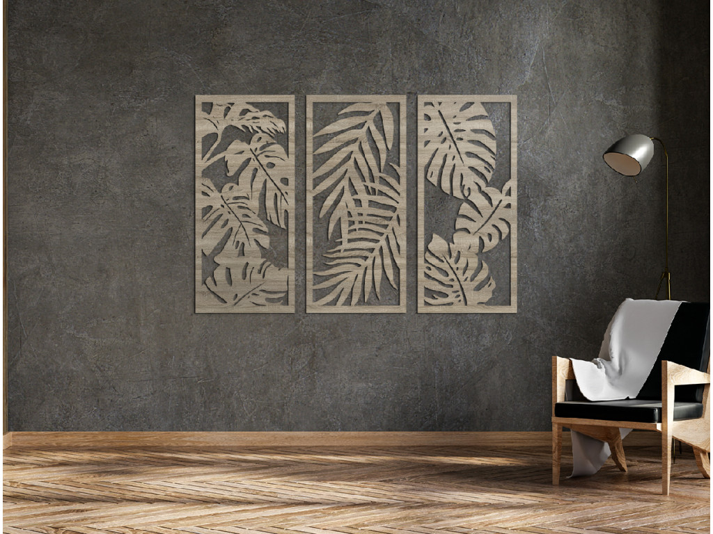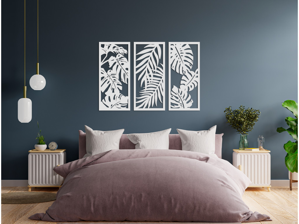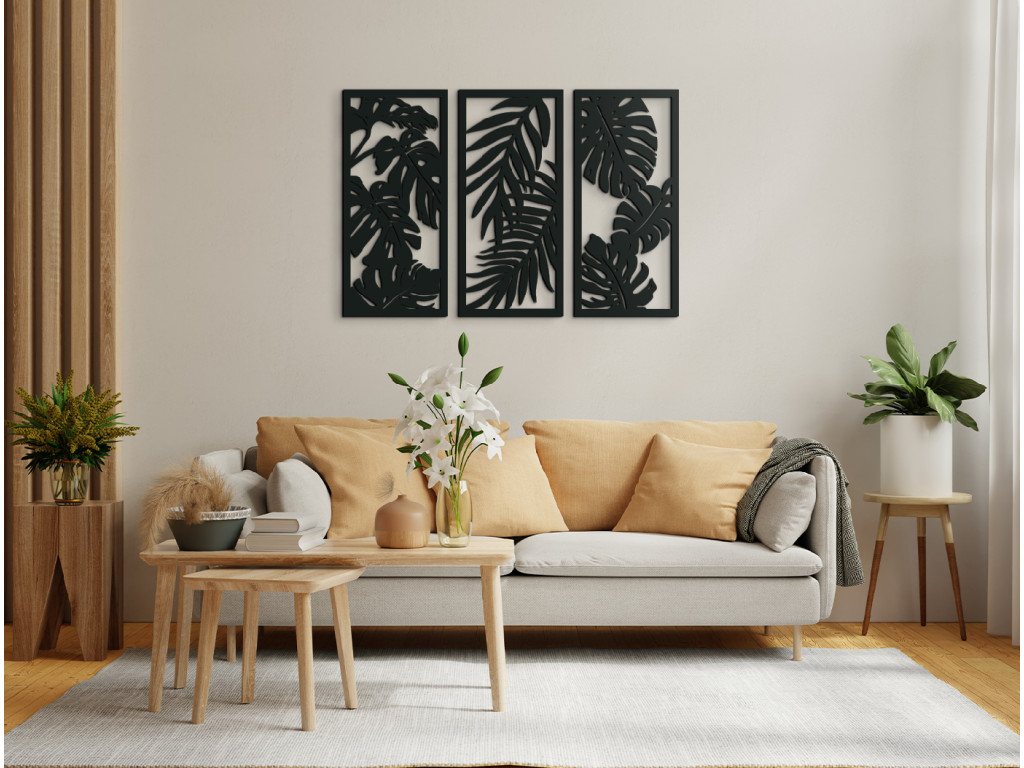 Les tableaux en bois aux motifs végétaux sont des décorations design adaptées à tous les intérieurs. Le tableau multi-panneaux Plantes est composé de 3 parties, chacune représentant une plante d'intérieur différente. Vous pouvez accrocher les éléments ensemble comme sur l’image illustrative, ou séparément selon vos préférences.