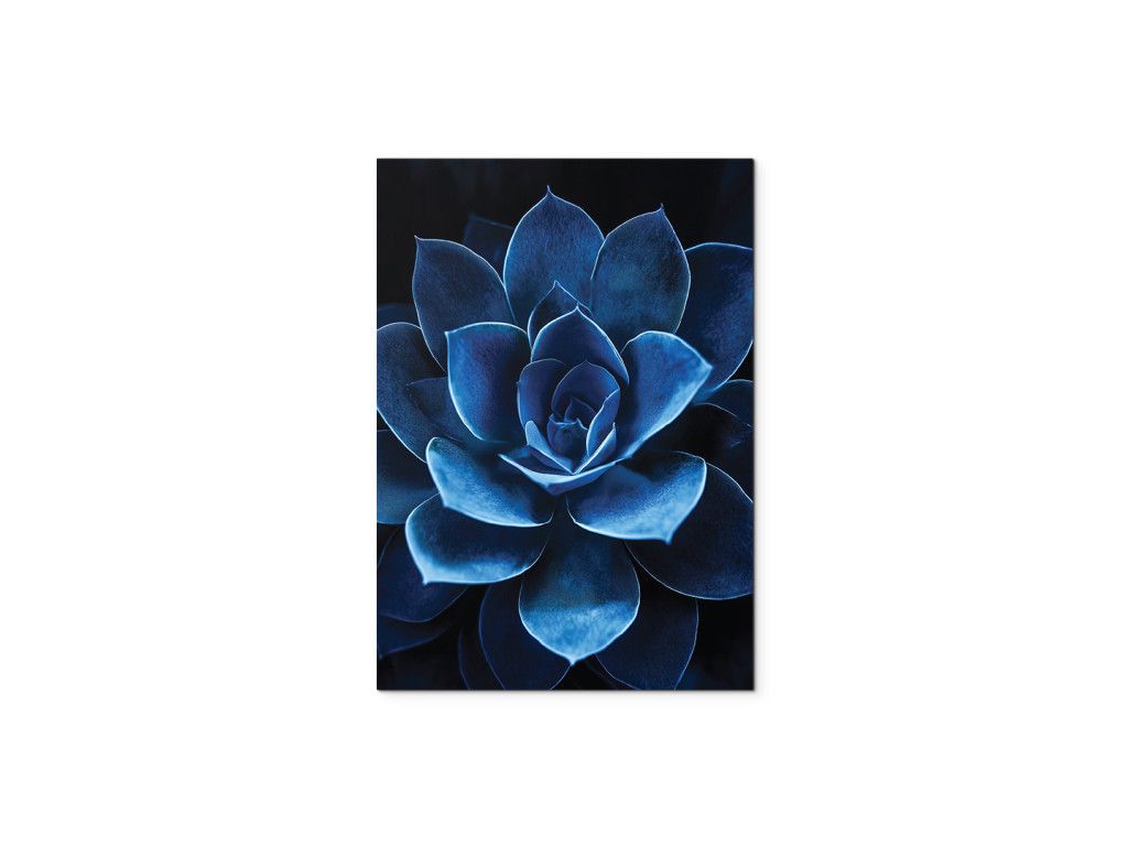 Succulente bleue est un tableau décoratif qui attire immédiatement l'attention grâce au contraste saisissant entre le bleu intense et le fond noir. La représentation détaillée des feuilles de la succulente lui confère un aspect moderne, épuré et élégant à la fois. Il est parfait pour apporter une touche stylée à un mur de bureau, de couloir ou de salon minimaliste.