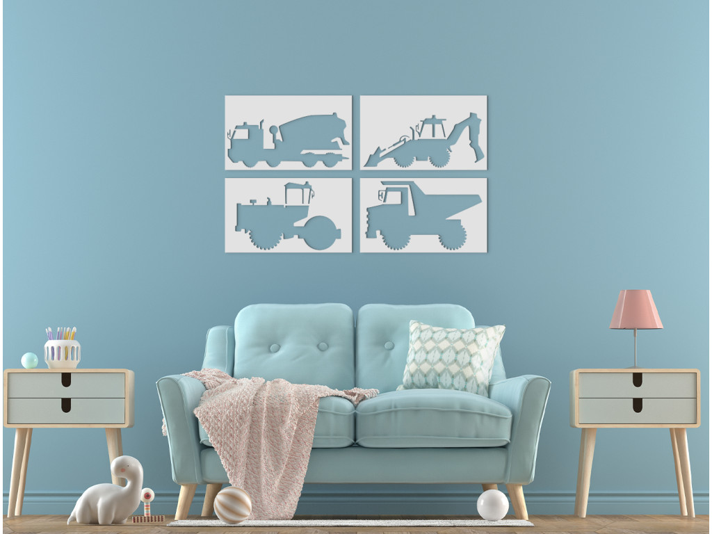 Le design original de la décoration en bois avec un motif de machines de chantier convient à n'importe quelle chambre de garçon. Il s'harmonise facilement avec le mobilier et donne à toute la pièce un look tendance.