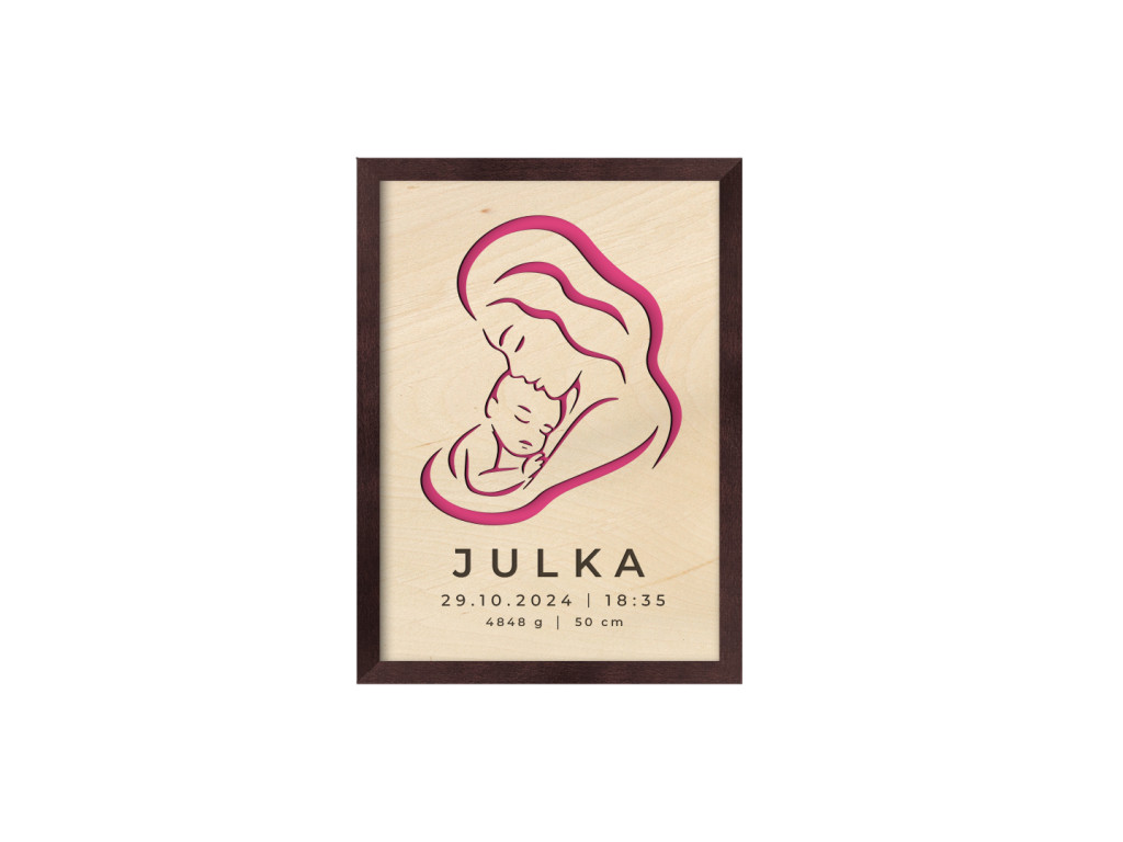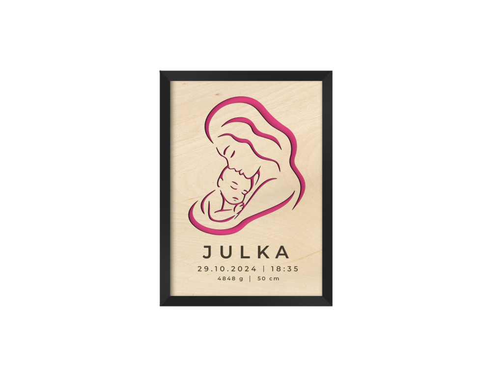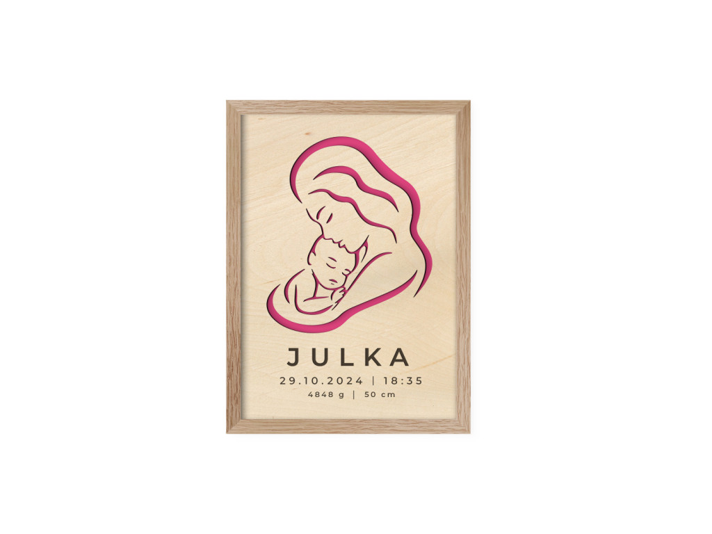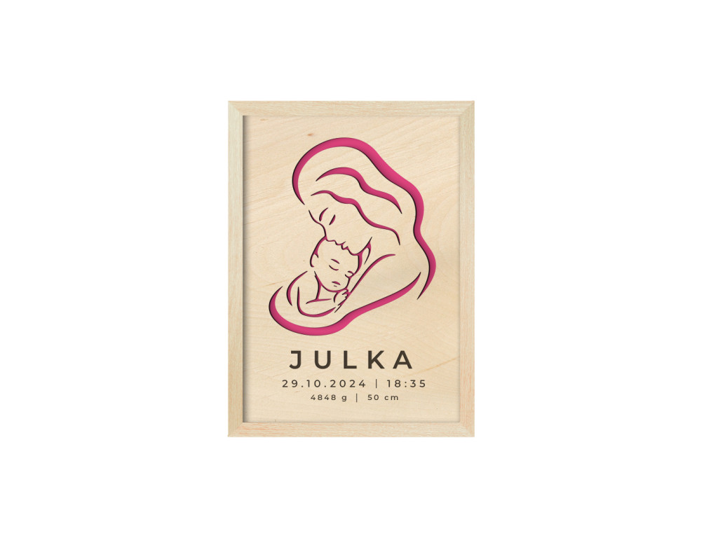 Nous encadrerons l'un des plus beaux moments de votre vie dans une jolie décoration en bois, accompagnée des informations gravées concernant votre bébé. Le nom, la date et l'heure de naissance, la taille et le poids ne seront ainsi plus seulement consignés dans le carnet de santé ou dans la mémoire des parents fiers. Vous pourrez les exposer fièrement chez vous et constituer progressivement une collection de toute votre famille qui s'agrandit. De plus, chaque image sera adaptée à vos goûts en termes de couleurs.