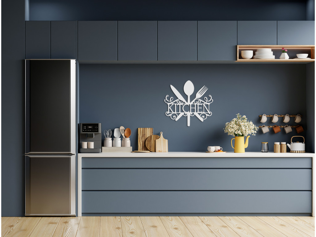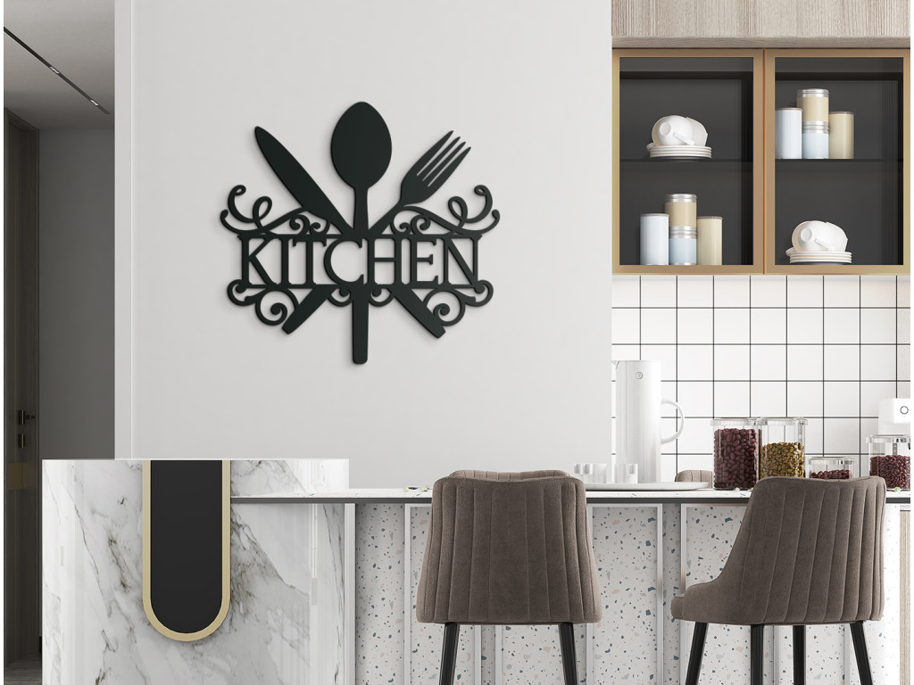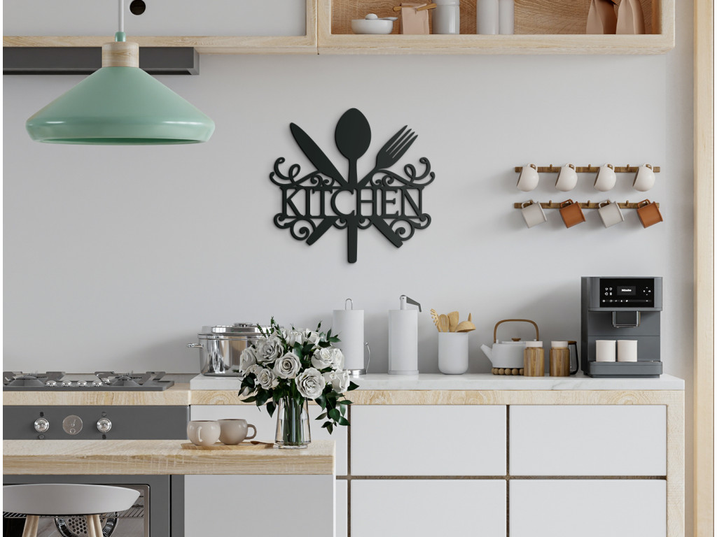 Drevené nálepky na stenu sú mimoriadne obľúbené nielen do moderných, ale aj tradične či retro zariadených domácností. Niektoré sa vďaka svojmu motívu hodia viac-menej kdekoľvek, iné majú svoje umiestnenie jednoznačnejšie. Práve tak je to aj pri drevenej dekorácii na stenu, ktorá sa skladá z nápisu Kitchen, ovenčeného ozdobami, pričom na pozadí sa nachádza nôž, vidlička a lyžica.