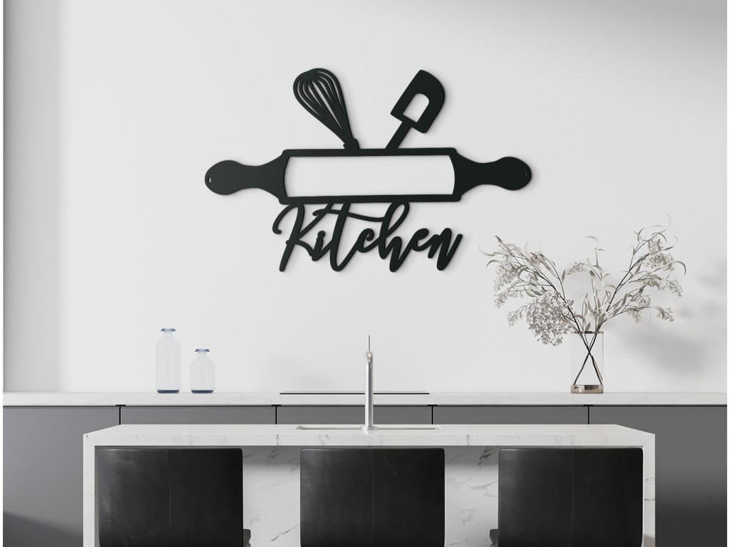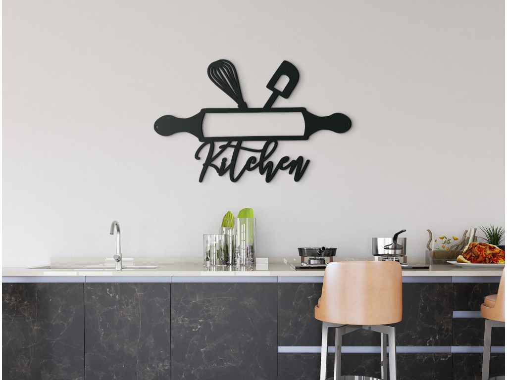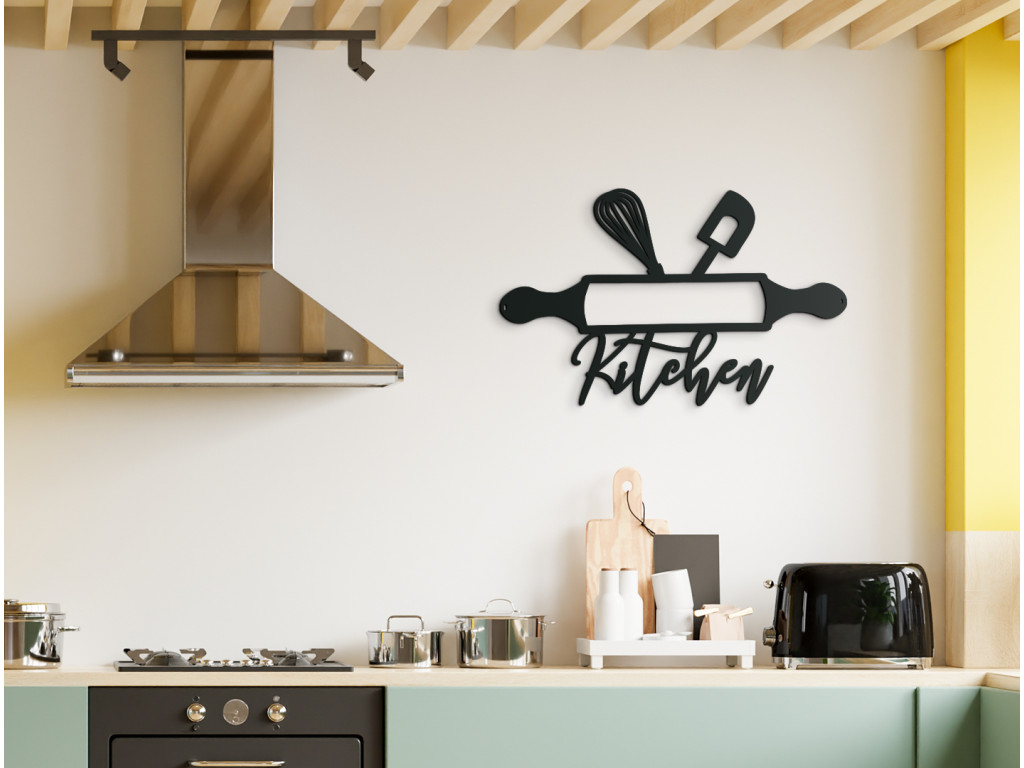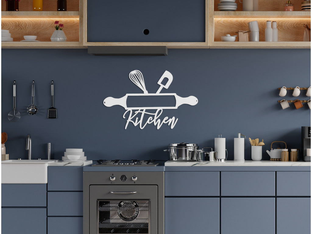 Zvoliť priliehavý obraz do kuchyne nie je vždy jednoduché. Drevená nálepka s motívom kuchynského náčinia však zapasuje do moderného i tradičnejšieho interiéru. Len ťažko by ste našli vhodnejší motív, ako je valček, stierka a metlička na šľahanie, vyšperkované dizajnovým nápisom Kitchen. Efektne vyplní prázdne miesto a zútulní celú miestnosť.