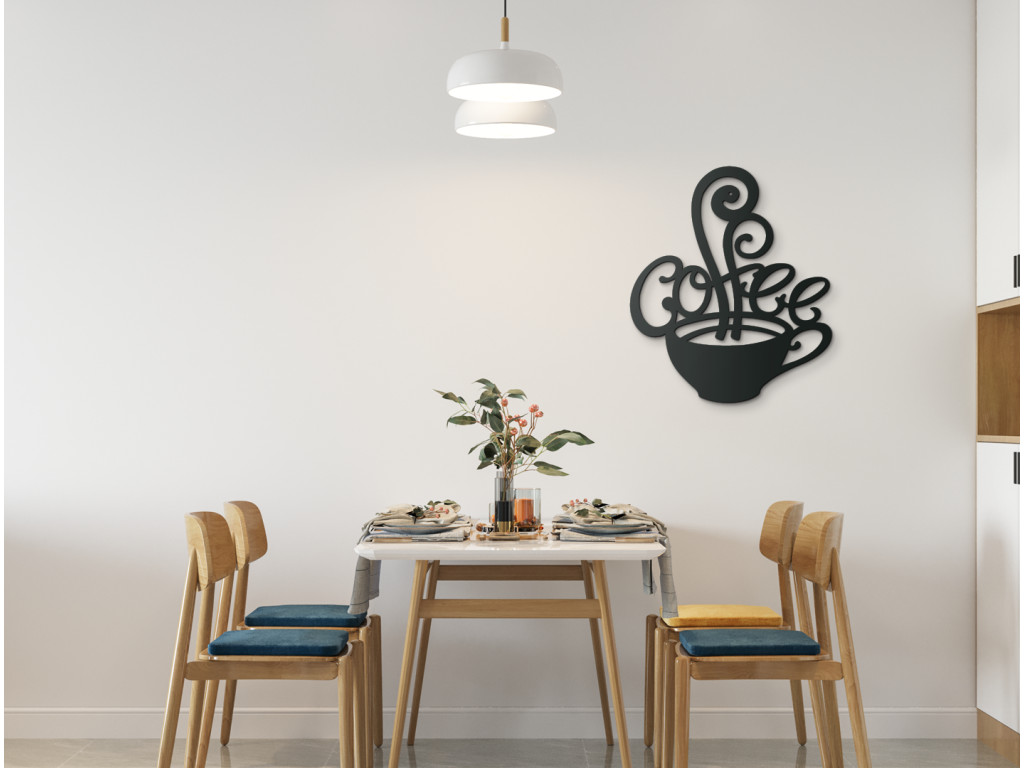 Pojem "káva" vyvoláva pozitívne asociácie u všetkých milovníkov tohto lahodného nápoja. A nemusí to byť len reálna horúca káva v šálke, ale napríklad aj drevená nálepka s motívom kávy a nápisom Coffee. Trendová dekorácia na stenu vylepší vzhľad kuchyne, obývačky, či jedálne. Môžete ju tiež použiť v kaviarňach, cukrárňach či reštauráciách.