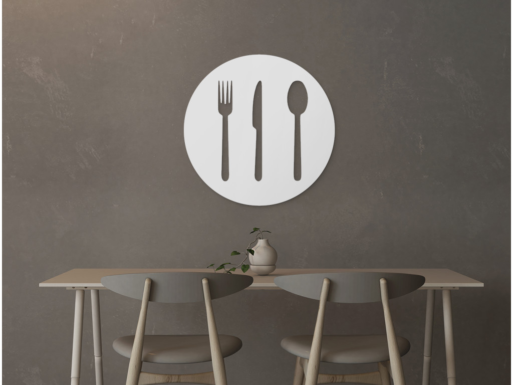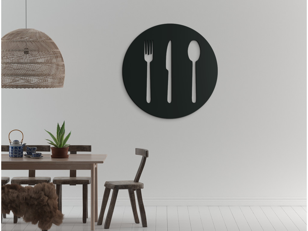 Ak hľadáte vhodnú tematickú dekoráciu do kuchyne, jedálne alebo dokonca reštaurácie, potom je pre vás okrúhly drevený obraz Príbor ako stvorený. Motív znázorňuje vidličku, nôž a lyžicu, čo ho priam predurčuje na zavesenie na stenu nad jedálenský stôl či kuchynskú linku.