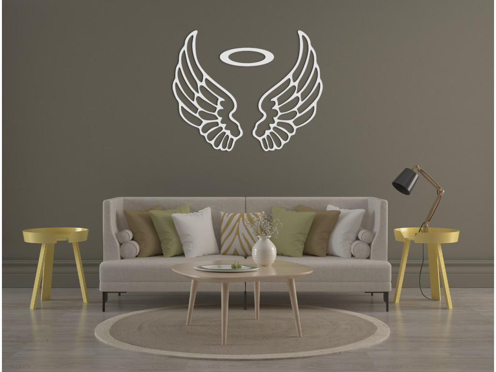 Cette décoration en bois sera un symbole de protection et de paix dans votre intérieur. Les ailes d'ange conviennent au salon, au couloir, à la chambre à coucher et à la chambre d'enfant. Grâce à leur auréole, elles s'intègrent parfaitement dans n'importe quel espace.