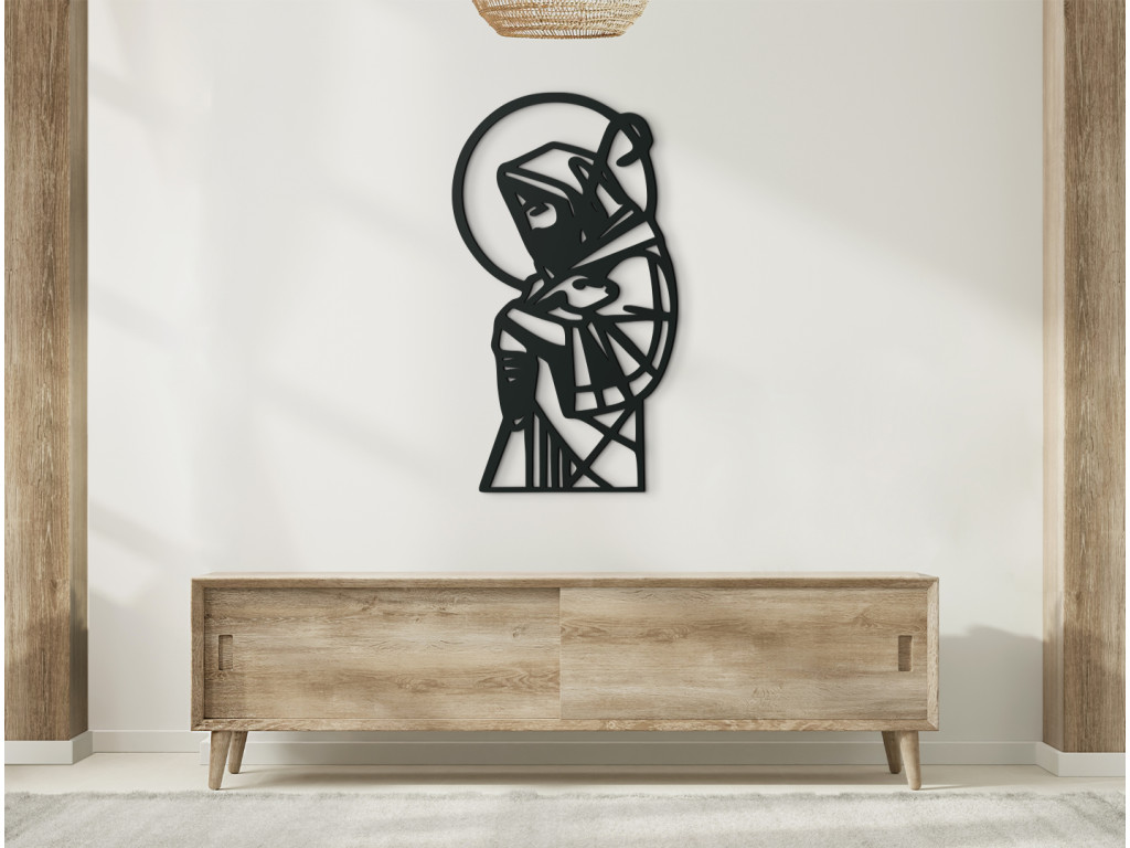 Moderná nálepka na stenu Dobrý Pastier vyniká prepracovanými detailmi. Ježiš Kristus, ktorý v náručí drží ovečku zapadne do každého interiéru. Dekorácia patrí medzi najobľúbenejšie a hodí sa najmä do moderných priestorov.