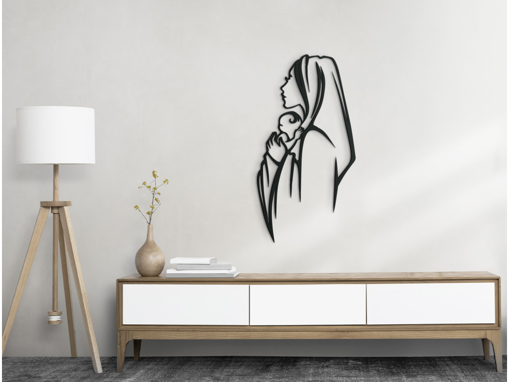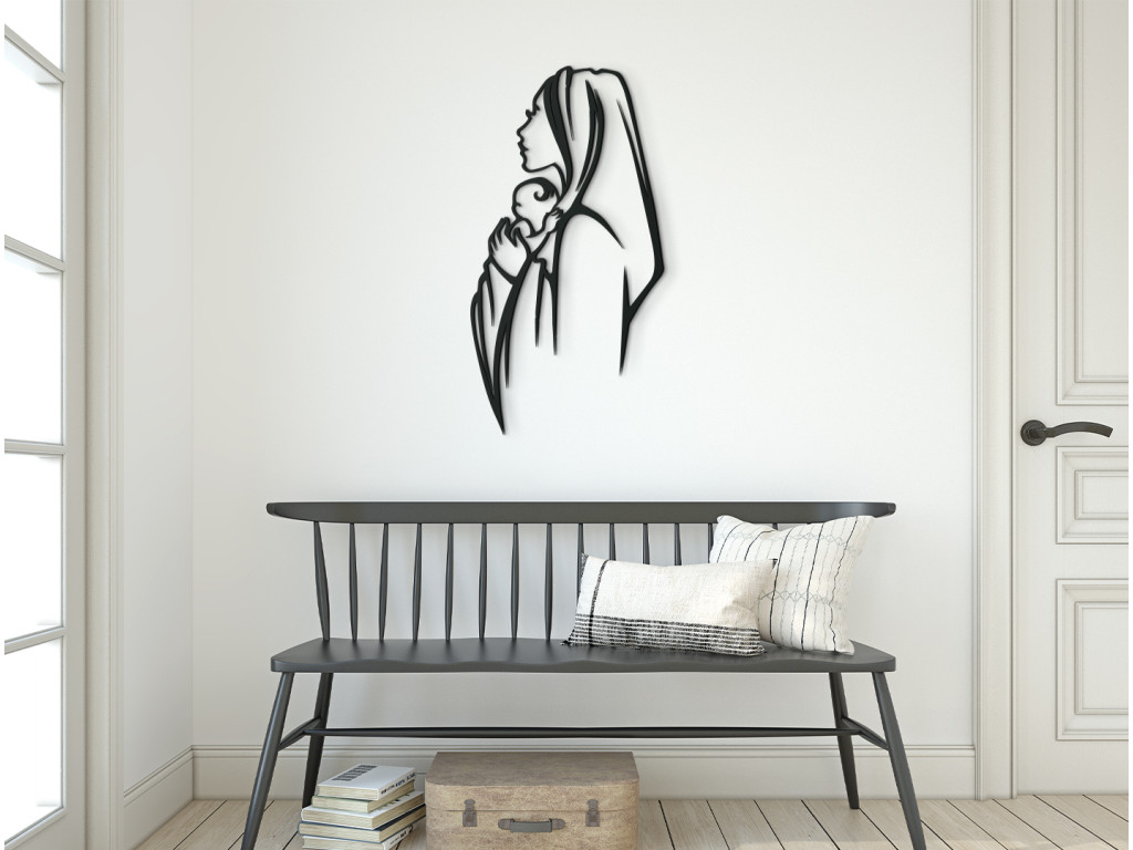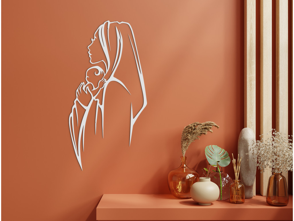 La représentation de la Vierge Marie tenant son fils Jésus dans ses bras séduira à coup sûr les amateurs de décorations modernes. L'autocollant en bois est un accessoire très apprécié pour le salon, la cuisine ou la chambre à coucher.