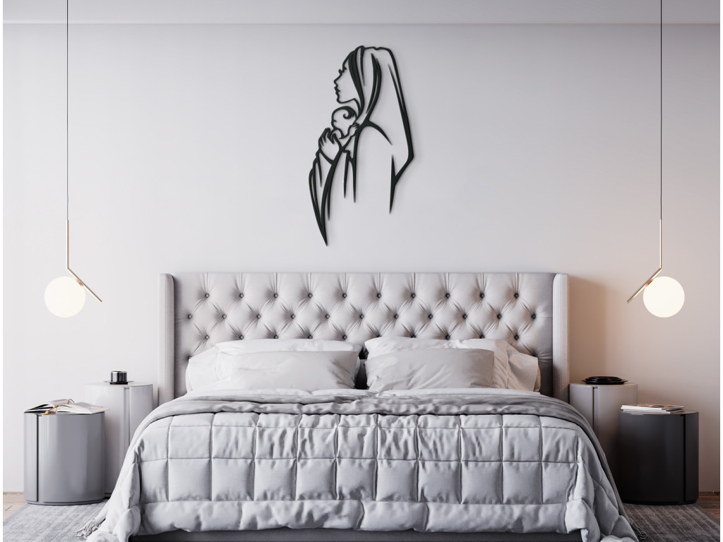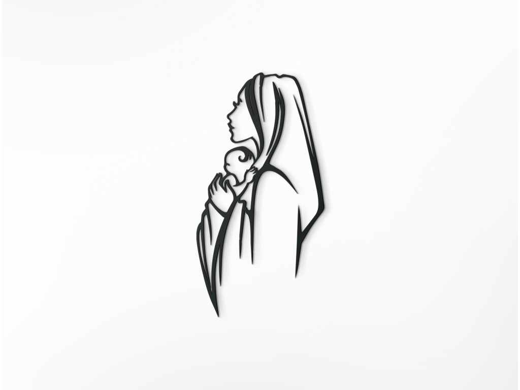 Moderný obraz Panny Márie vytvorí v miestnosti jedinečný dizajn. Jemné črty a nežnosť, ktorá z obrázku vychádza vnesie do interiéru pokoj a príjemnú atmosféru. Dekorácia patrí medzi najobľúbenejšie a hodí sa najmä do moderných priestorov.