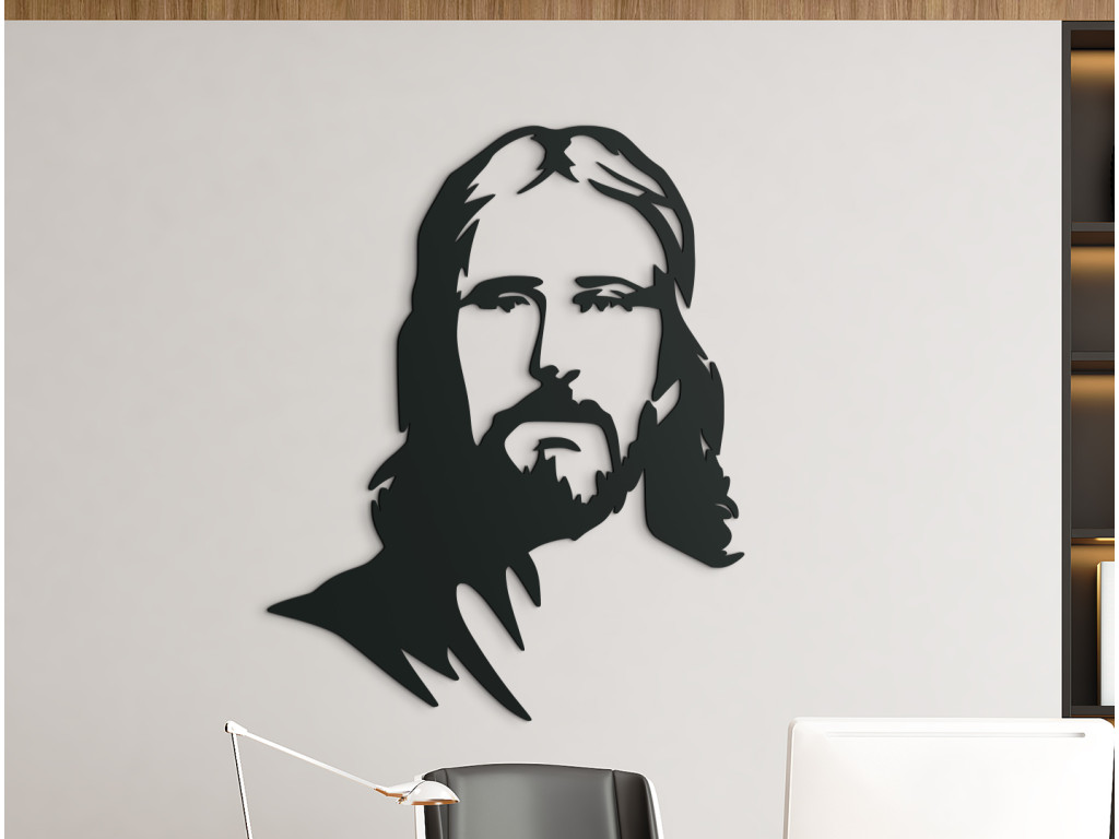 Moderná nálepka na stenu Ježiš zapadne do moderného interiéru. Dekorácia patrí medzi najobľúbenejšie a v miestnosti vytvorí očarujúci dizajn. Pohľad Ježiša vytvorí v miestnosti príjemnú atmosféru.